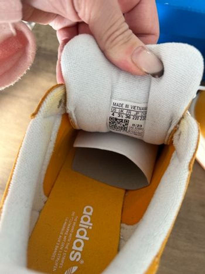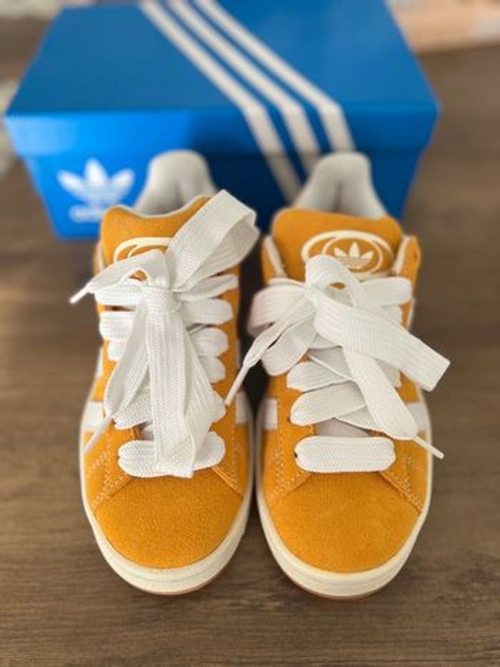 Adidas campus moutarde Je la vends car je n’aime pas la couleur . Jamais portée vendue dans la boîte d’origine avec lacet en + couleur moutarde Le jaune a déteint sur le blanc à l’intérieur à cause d’être restée longtemps dans la boîte je pense