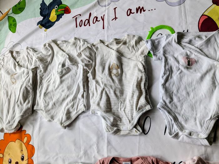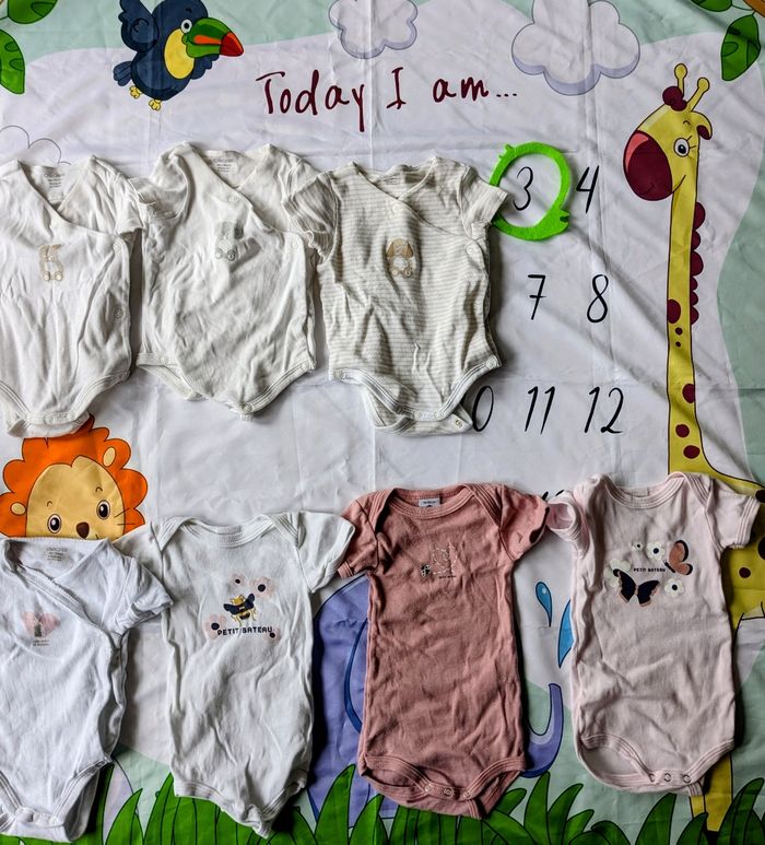Je vends ce lot de 7 bodys 3 mois très bon état, sans trou ni tâche. Très peu portés et certains pas portés juste lavés.