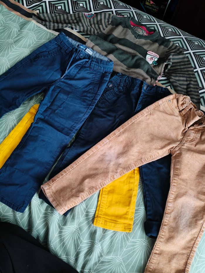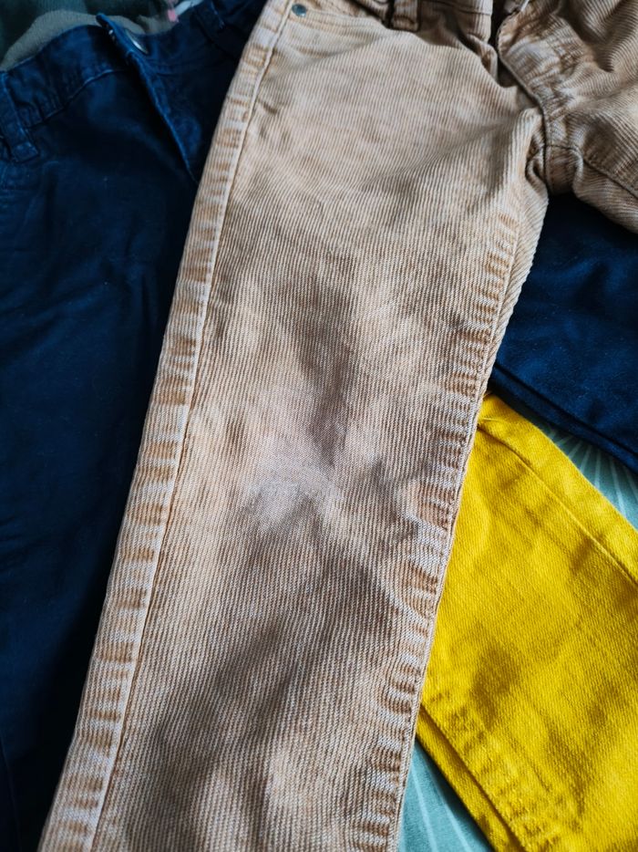 1 pantalon marron clair tape à l'oeil un peu frotté genoux mais sans trou