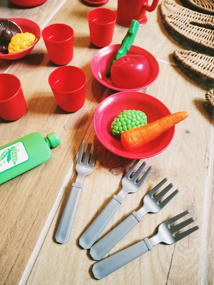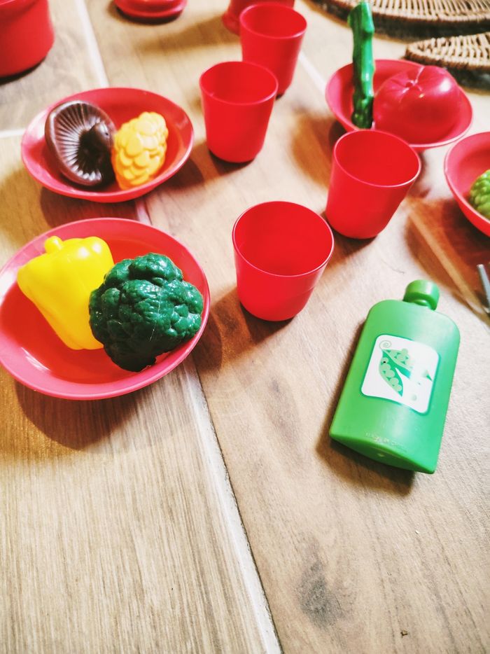 🥦Dinette gros lot service vaisselle avec légumes aliments en plastique marque Ecoiffier PL171
