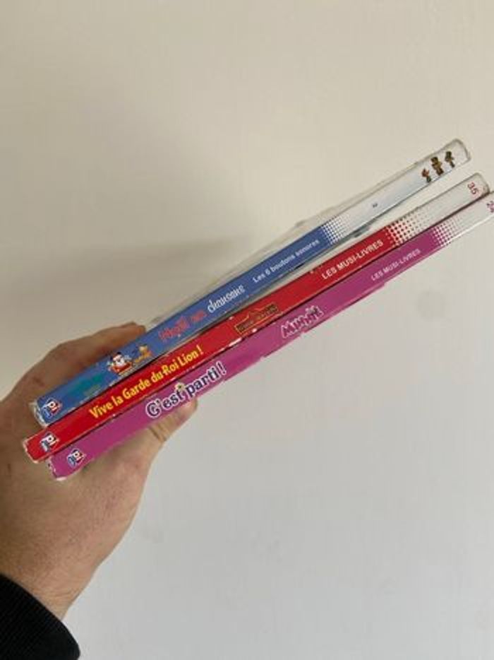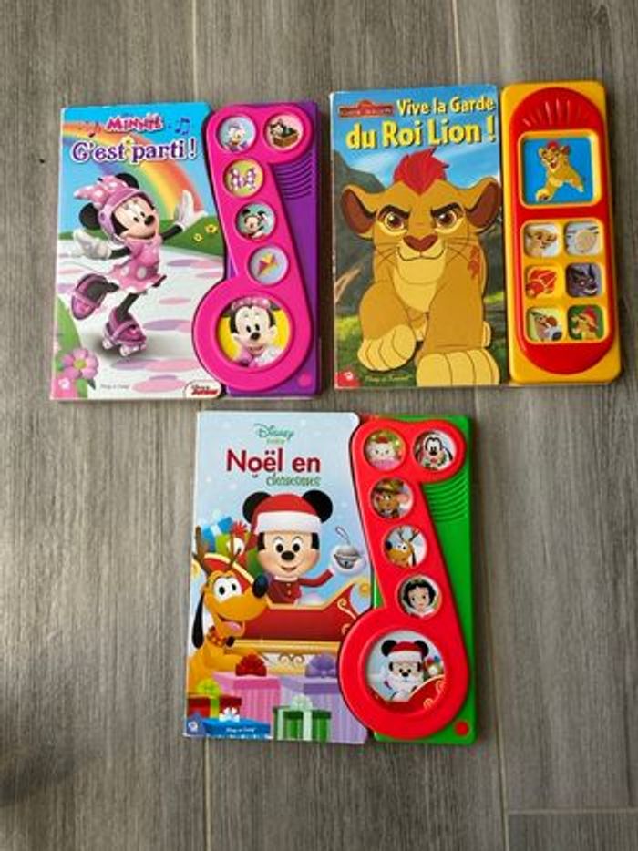 Je vends plusieurs livres sonores Disney, chacun en bon état général. Ils fonctionnent avec des boutons permettant d’écouter des sons, voix ou mélodies.