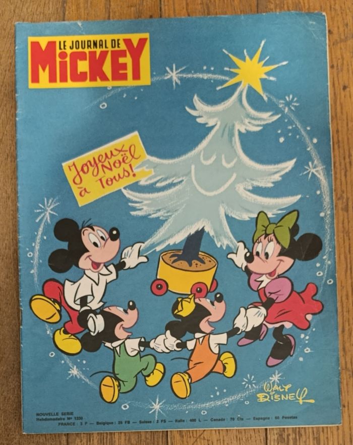 Ancien journal de Mickey spécial Noël" avec poster N°1330 de 1977 vintage