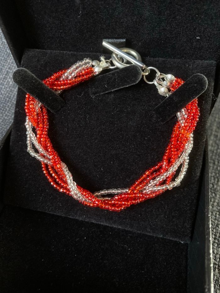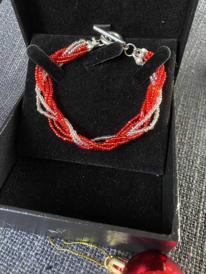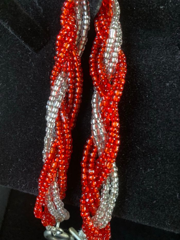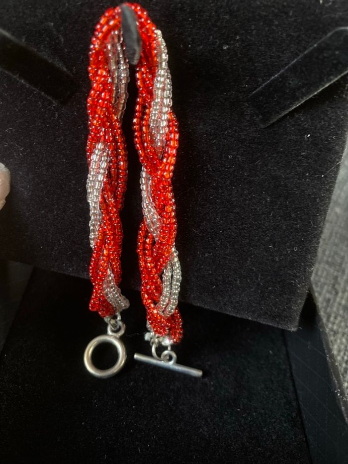 Bracelet rouge et blanc petites perles tressées - photo numéro 1