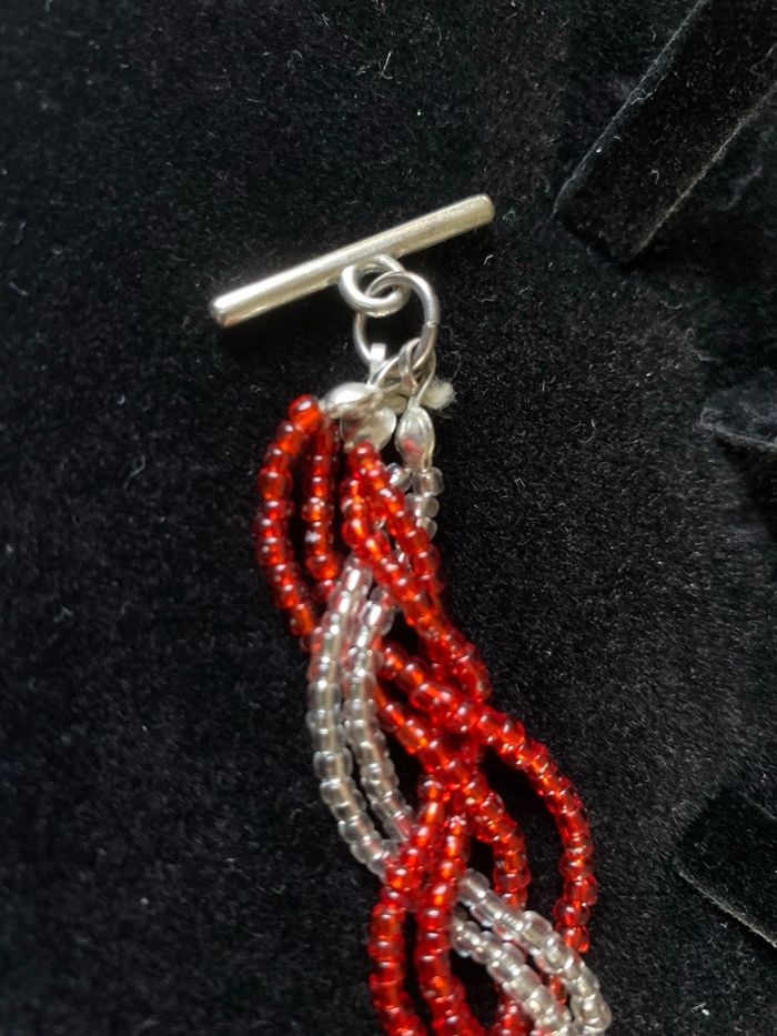 Bracelet rouge et blanc petites perles tressées Longueur totale 21,5 cm