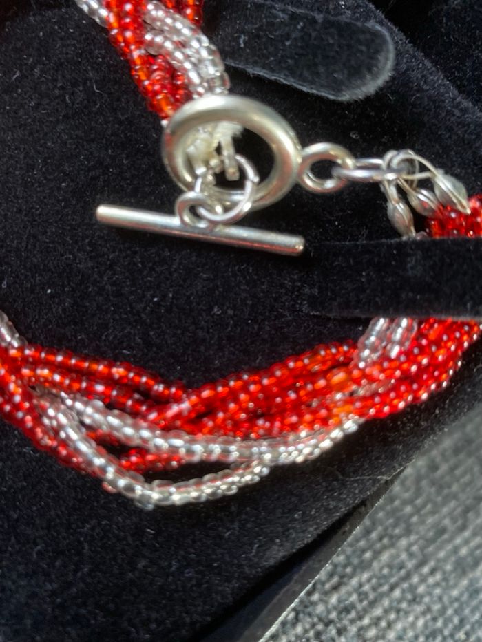 Bracelet rouge et blanc petites perles tressées - photo numéro 2