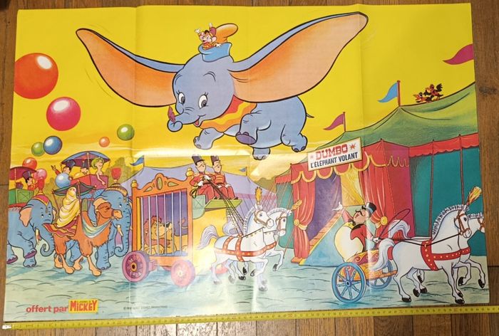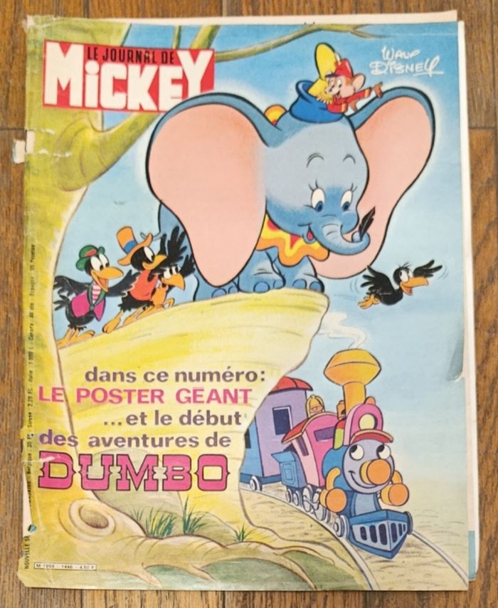 Ancien journal de Mickey avec poster géant Dumbo 1980 N°1446 vintage