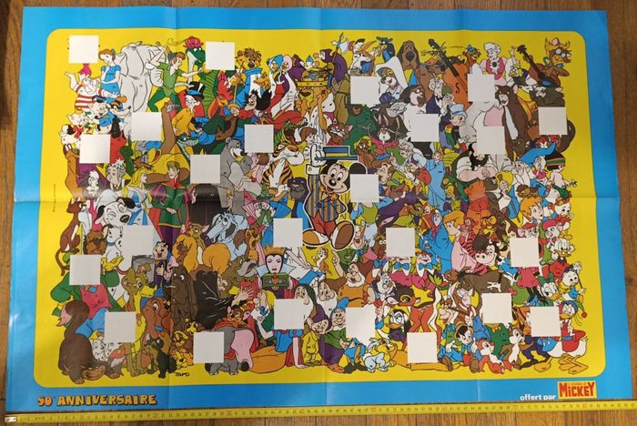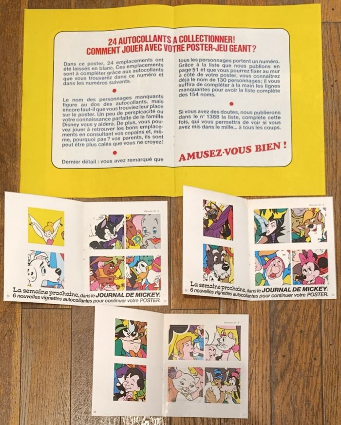 Ancien magazine Journal de mickey N°1385 Année 1979 Avec cadeau Poster géant 154 personnages Disney (87cmX57cm) Avec vignettes à coller sur le poster Planches n°2, 3 et 4 (Manque planche n°1) Soit 18 vignettes présentes sur 24 Quelques traces d'usure mais reste en assez bon état Cf photos De nombreux anciens magazines dont journal de Mickey avec cadeau et articles vintage disponibles, N'hésitez pas à regarder mes autres annonces