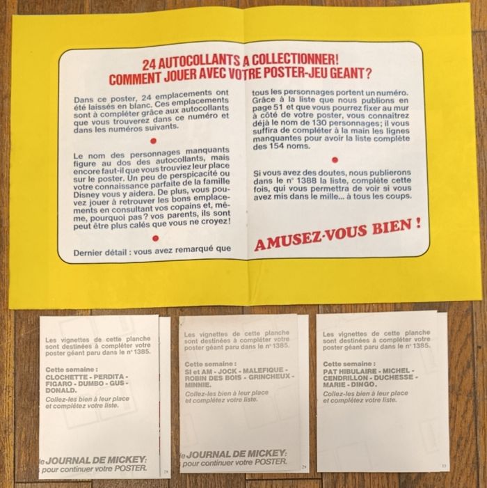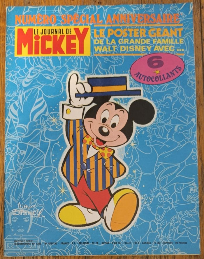 Ancien journal de Mickey avec poster géant Disney + vignettes 1979 N°1385 vintage