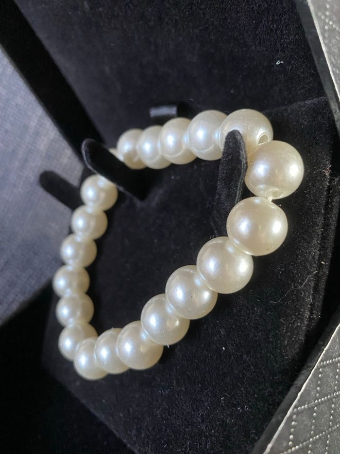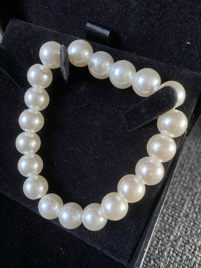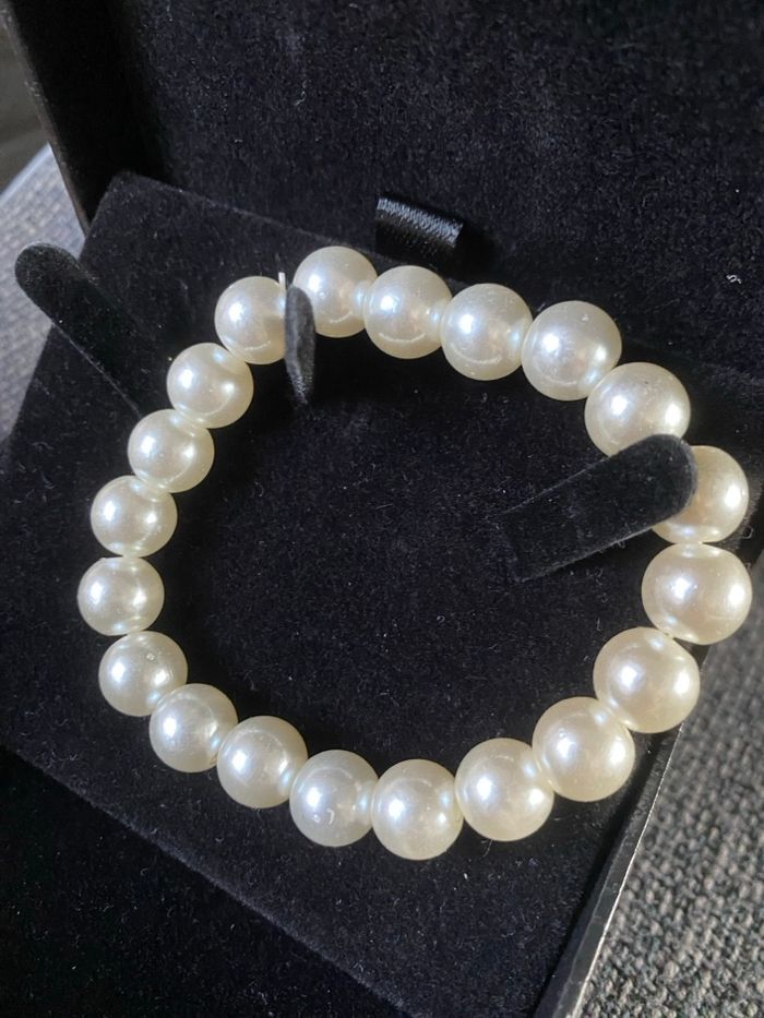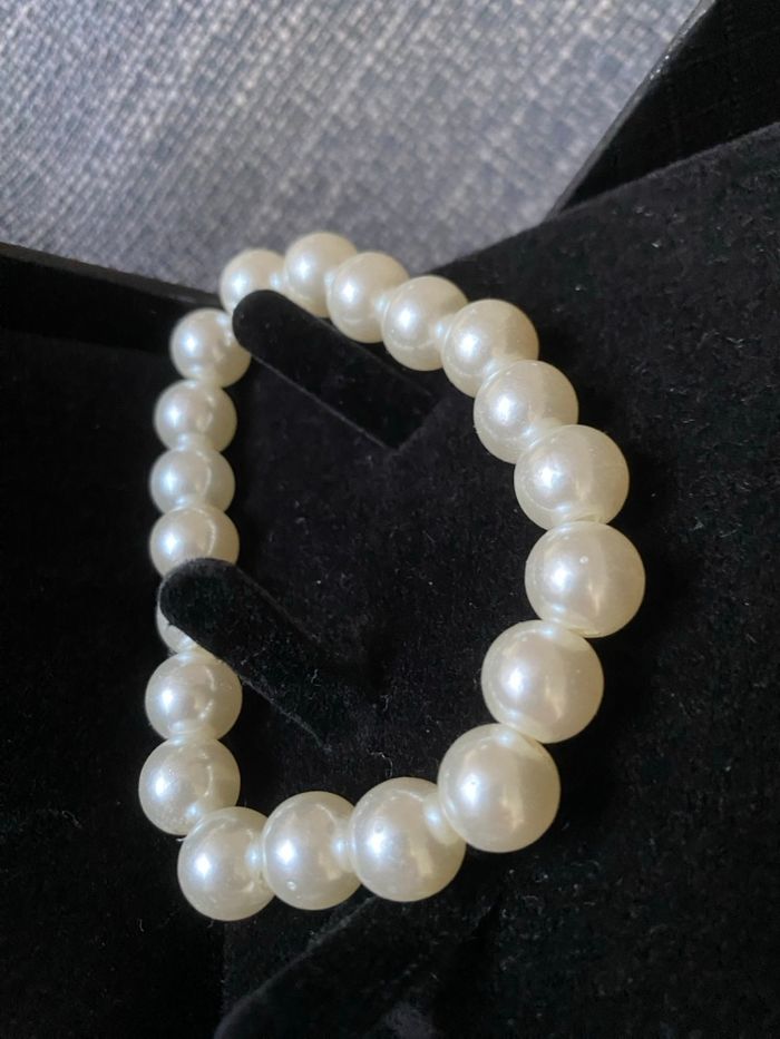 Bracelet élastique perles nacrées Longueur à plat 10 cm, perles 1 cm