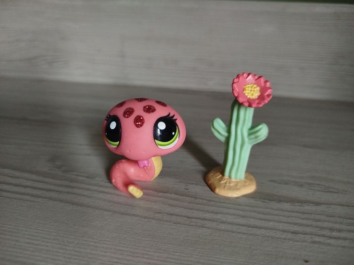 serpent rouge pâle tacheté de paillettes rouges avec son cactus, set complet.