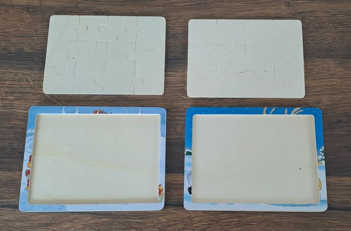 Lot de 4 jouets éducatifs en bois pour enfants en très bon état à partir de 3ans. * Le premier jeu de dominos de la marque Playtive. Dominos en bois un côté animaux l'autre points pour représenter les chiffres. * Le deuxième jeu de mikado en bois neuf sous blister de la marque P'tit bois. * Le troisième et le quatrième sont des puzzles en bois de 12 pièces chacun sur le thème de Noël.