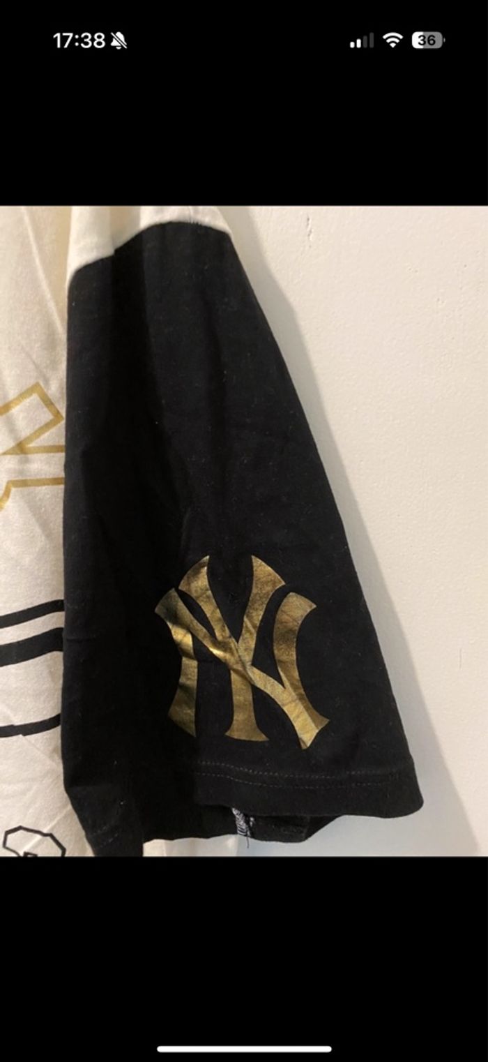 💯 Tshirt homme confortable, idéal pour un look décontracté. 👕Taille: XL 📍 Marque : foot locker 🔖 Édition : baseball Yankees 🔵 Couleur : blanc avec imprimé doré/noire 🧼 Bon état, Remarque : imprimé au bras un peu abîmé