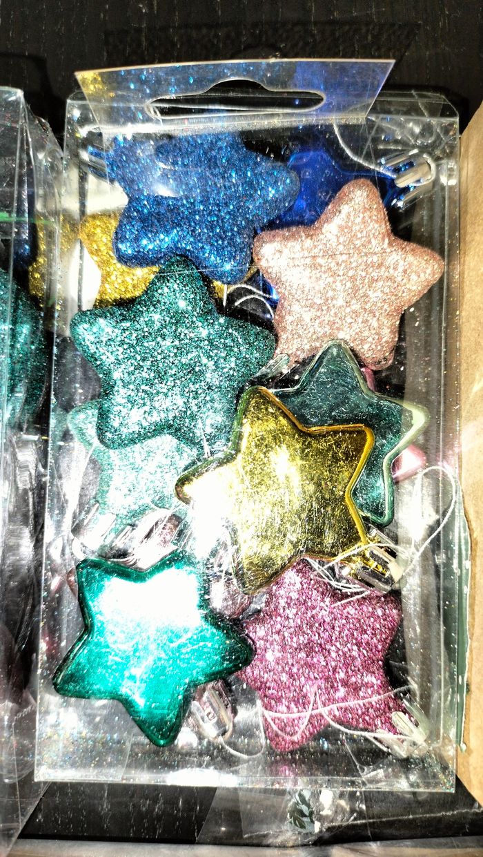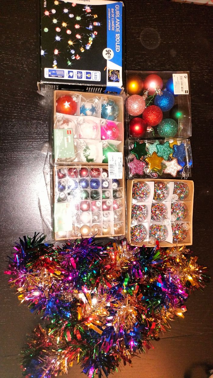 Je vends ce lot de décorations multicolores pour sapin de Noël, parfait pour apporter une touche de gaieté à votre intérieur. - Type de produit : Lot de décorations de Noël - Couleurs : Multicolore - Inclus : Boules de différentes tailles, 1 guirlande lumineuse led multicolore parfaitement fonctionnante, une guirlande multicolore. Très bon état N'hésitez pas à me contacter pour plus d'informations.
