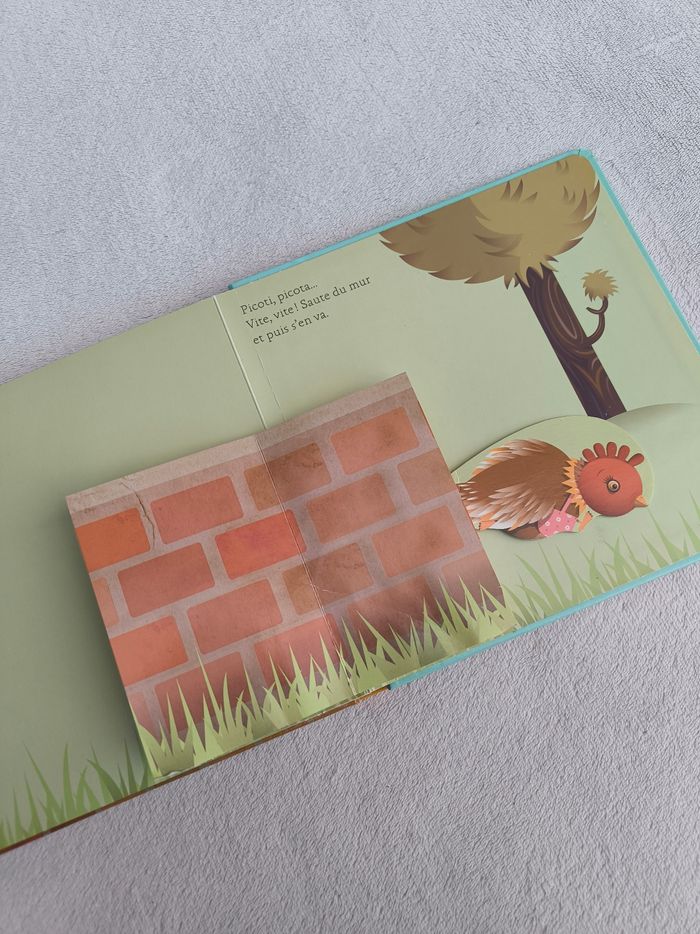 • Dernier pop-up abîmé, poule rescotché, renard manquant