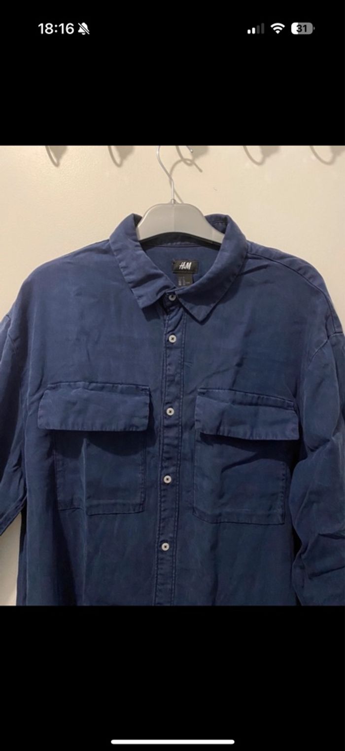 💯 chemise homme confortable, idéal pour un look chic et décontractée 👕Taille: XL 📍 Marque h&m 🎨Couleur : bleu marine 🔖 État : très bon état 👔2 poches avant ✅ La couleur délavé est normal