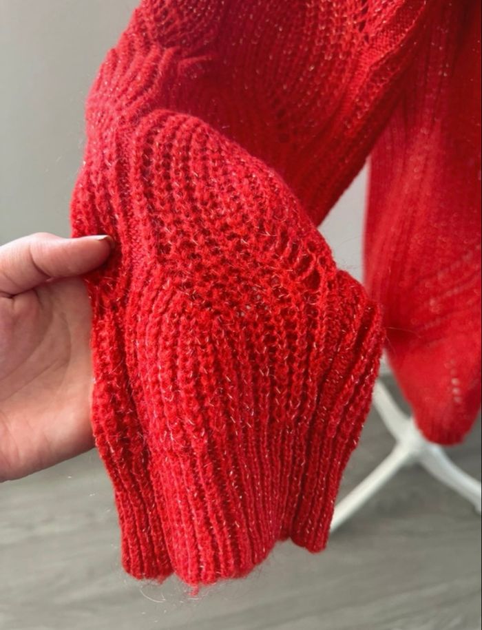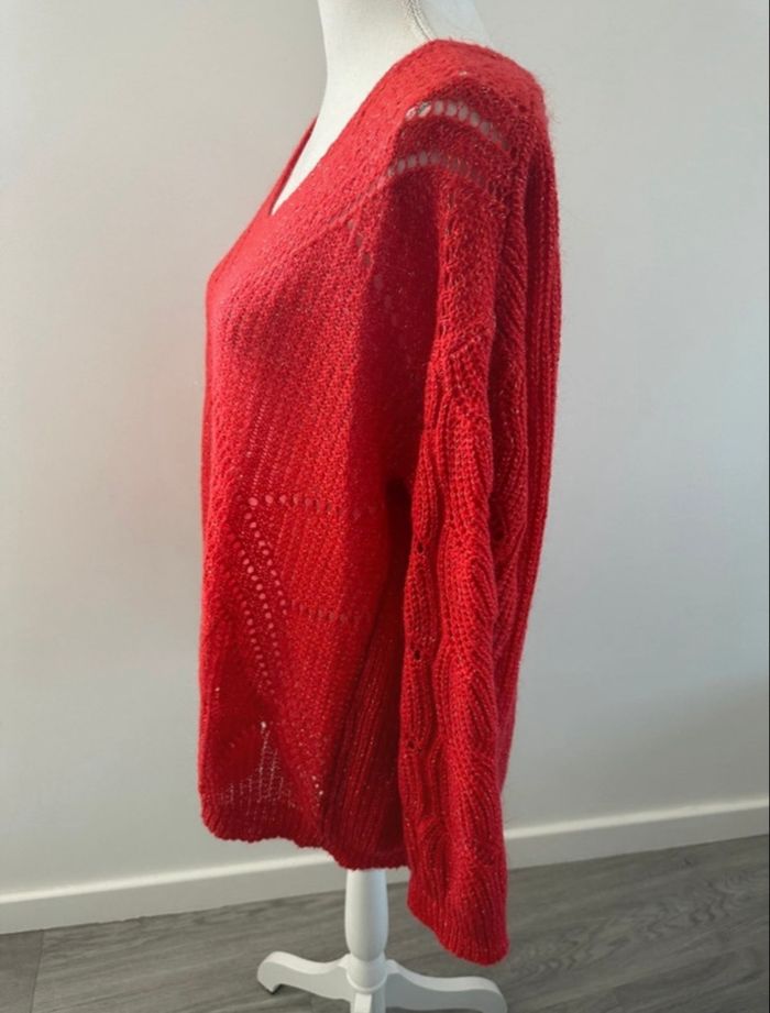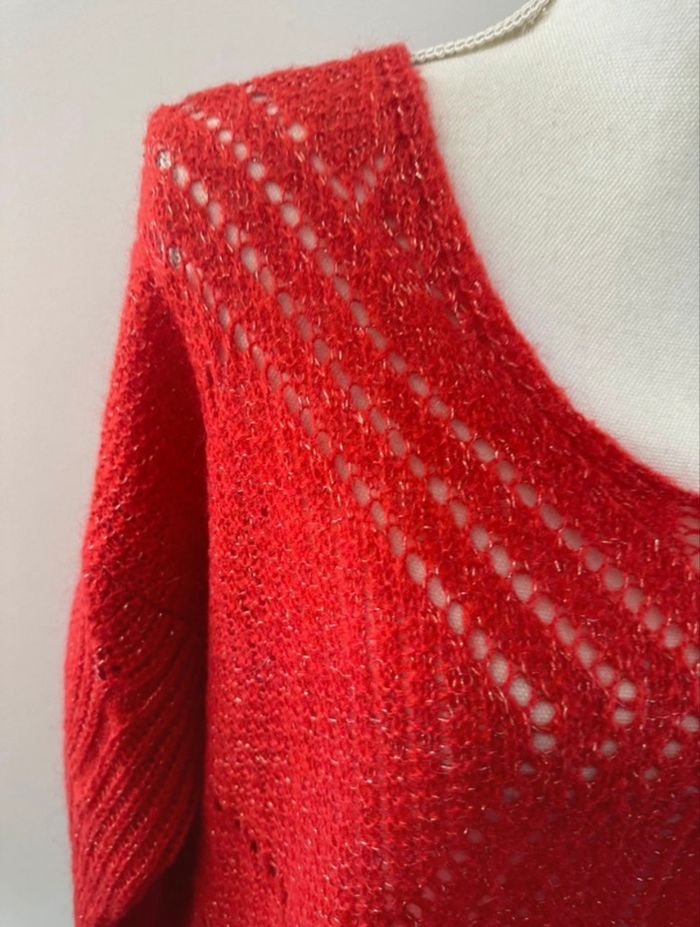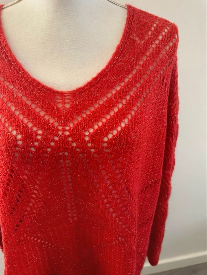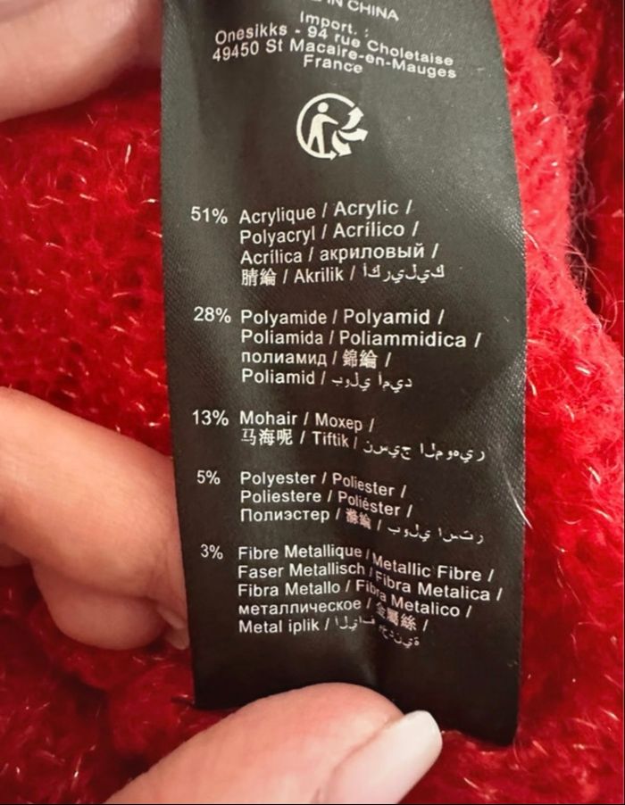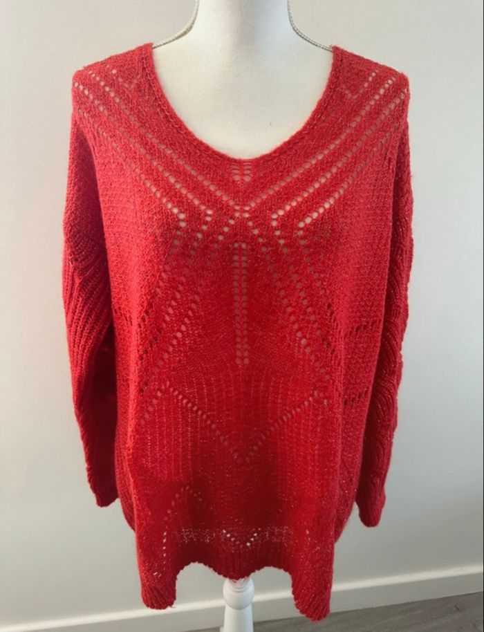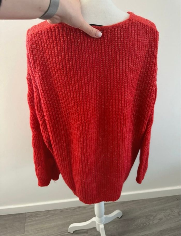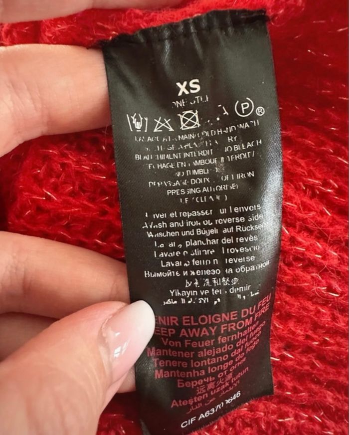 L’étiquette indique une taille XS mais les dimensions correspondent à du 50-52-54 5XL 6XL 7XL. À vous de voir si vous souhaitez un pull à votre taille ou une coupe hyper oversize