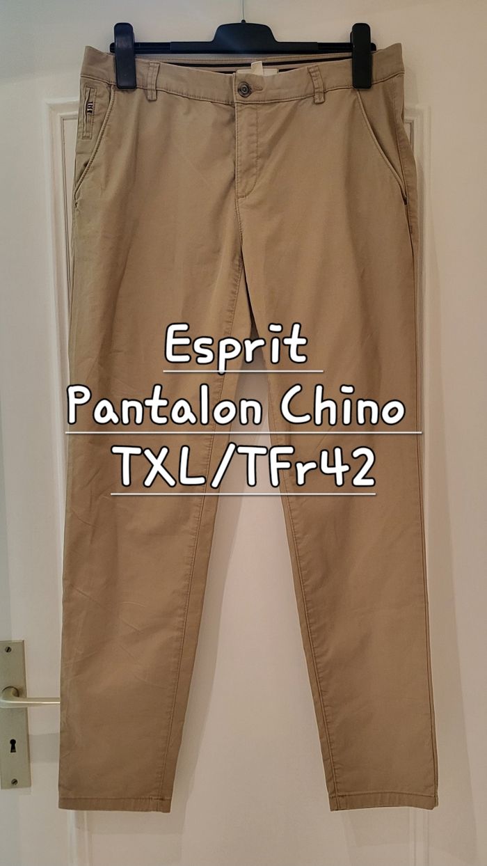 Esprit Pantalon Chino TXL/TFr42-Beige/Crème-Coupe Ajustée&Taille Mi-Haute-Tissu Soyeux en TBE - photo numéro 1