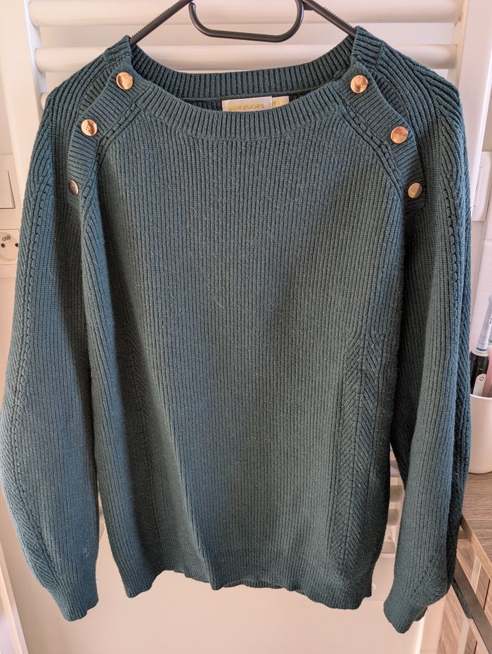 En très bon état. Couleur plutôt vert sapin (ça à du mal à bien se voir sur les photos) Il est épais et il tient chaud. Marque Season. Réductions sur les lots n'hésitez pas !! #pullfemme #pullseason38 #pullseason #season