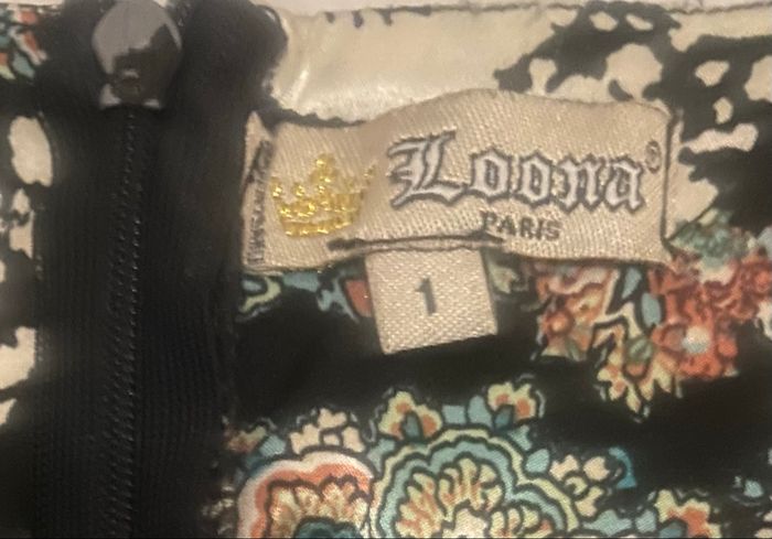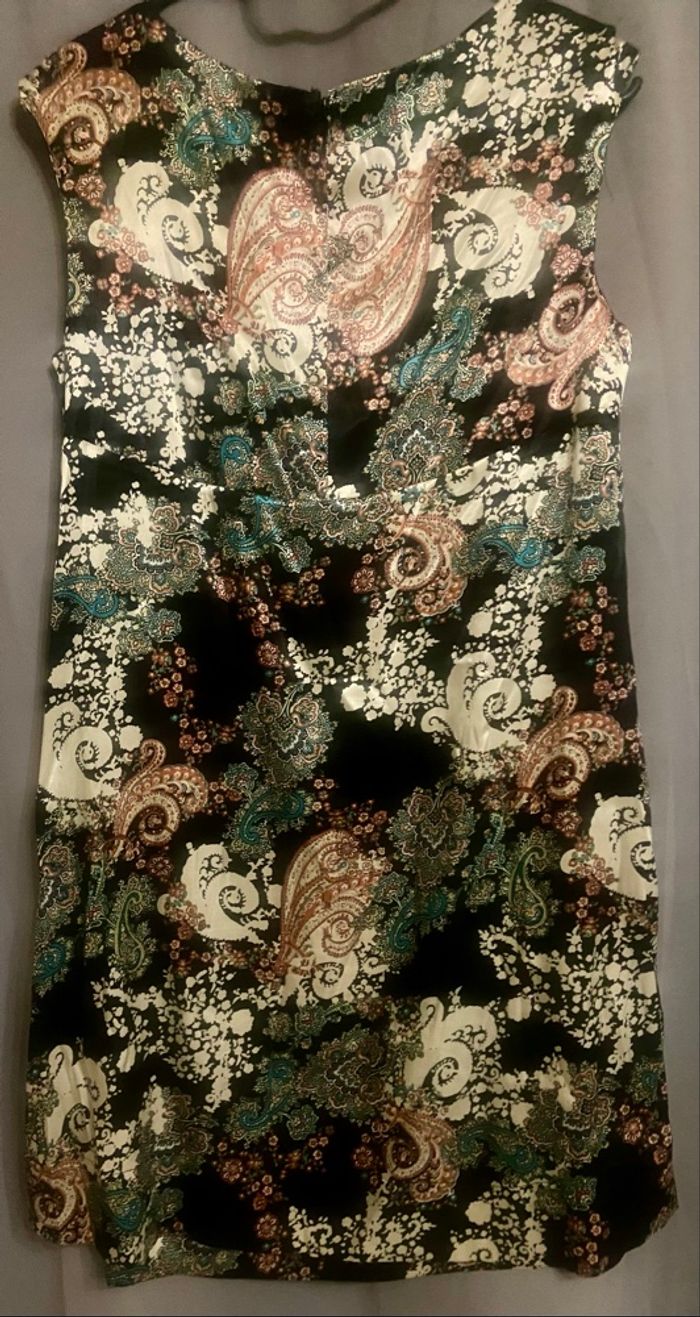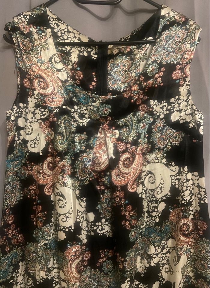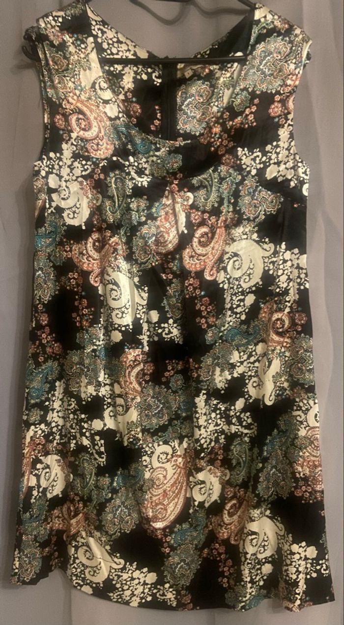 Robe courte satinée »Loona »motifs multicolores,en très bel état.