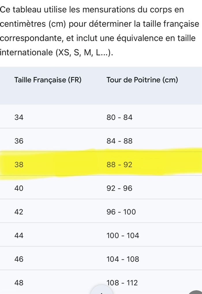 Mesure d’aisselles à aisselles:44,5cm=89cm de tour de poitrine.