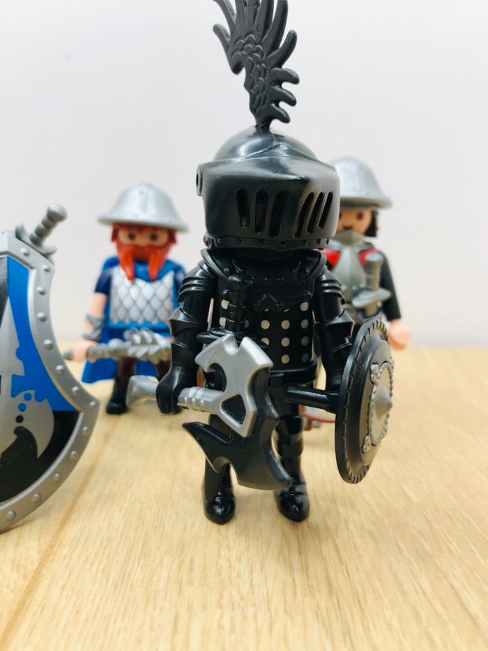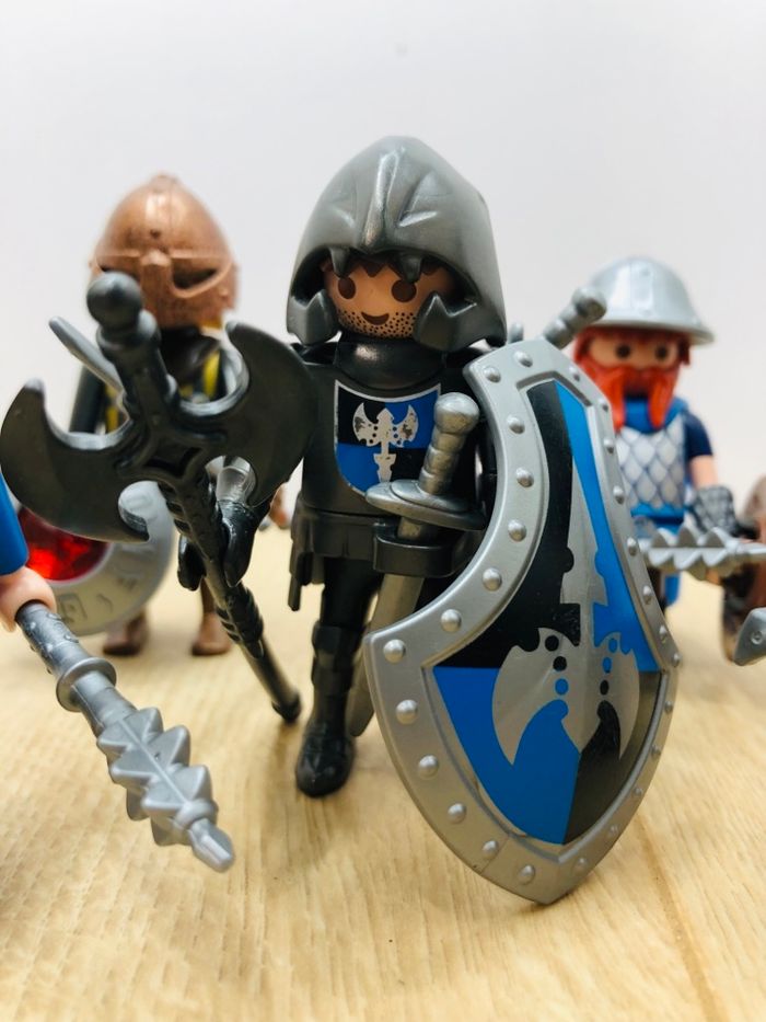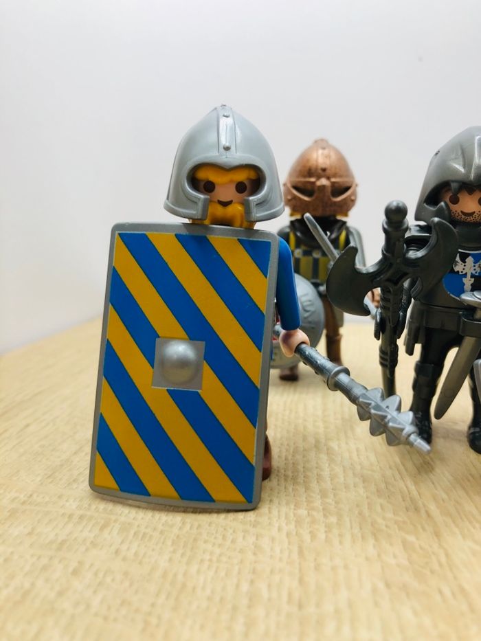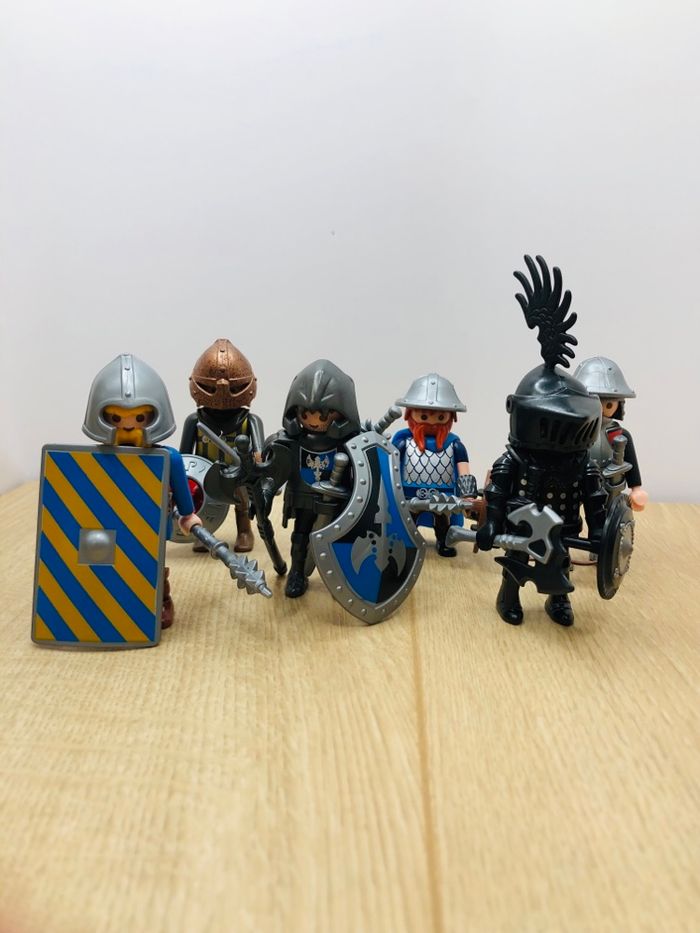 Groupe de chevaliers playmobil très bien équipés . Très bon état Vous achetez tout ce que vous voyez sur les photos. Possibilité de créer des lots avec d’autres articles du dressing. Il y en a pour tous les goûts, chevaliers, animaux, pirates, chateaux, véhicule, travaux, pompiers, policiers et pleins d’autre playmobil.