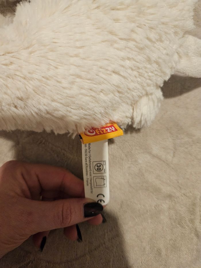 Peluche sac blanc très bon état pouvant etre lavée a la machine à laver ( voir étiquette)