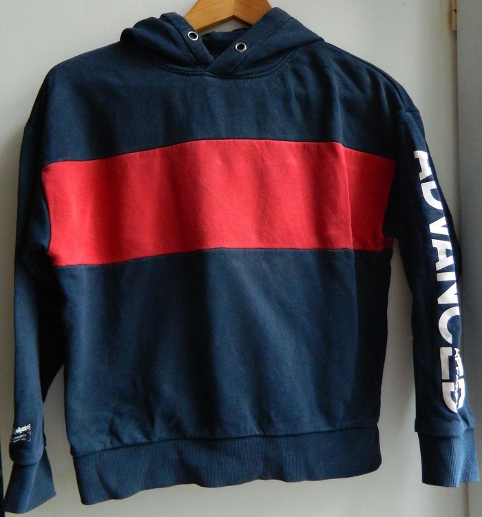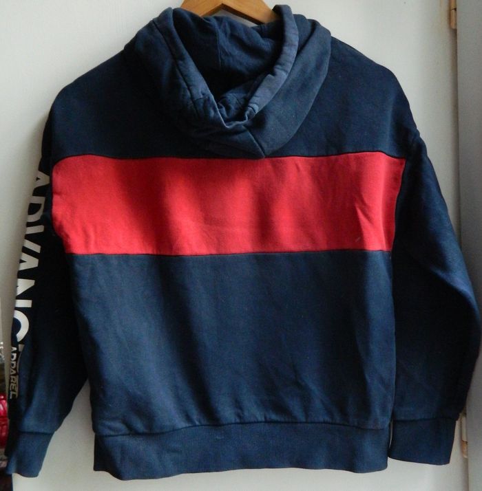 Sweat à capuche T 12 ans Marque "Kiabi" Bleu marine et rouge En coton Très bon état Envoie sous 48 h