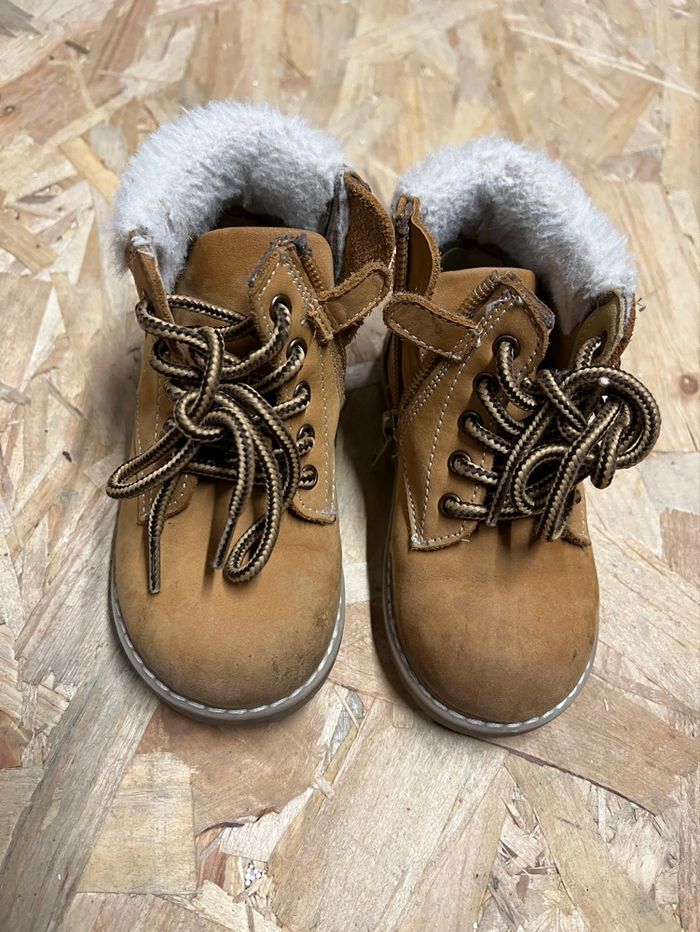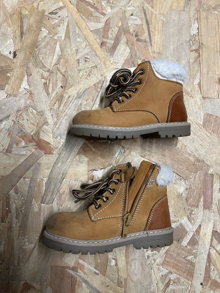 Bottines d’hiver en cuir style Timberland garçon pointure 22