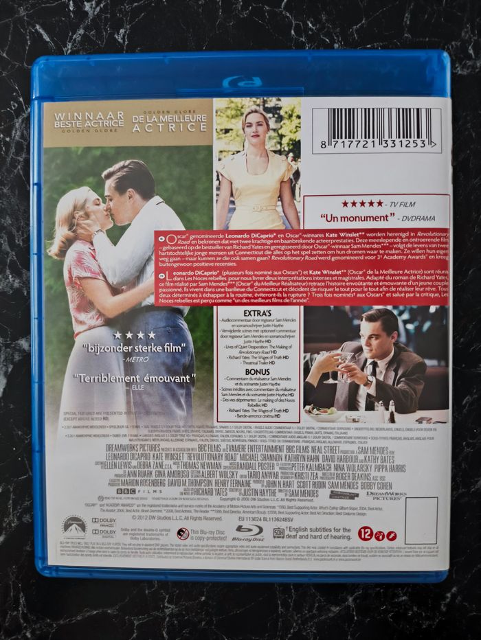 Film Les Noces Rebelles (2008 - Revolutionary Road) en très bon état. Drame de Sam Mendes avec Leonardo DiCaprio, Kate Winslet, Kathy Bates, Michael Shannon et David Harbour. Plusieurs autres films (DVD et blu-ray) et séries télé disponibles sur mon dressing. Si vous avez des questions ou souhaitez plus de photos, n'hésitez pas à me demander. Prix négociable seulement si vous achetez plusieurs articles. N'hésitez pas à créer un lot et à faire une proposition raisonnable et à me demander un prix. Tag de recherche : #neboo_video #neboo_bluray #neboo_film blu ray bluray langue français française French FR