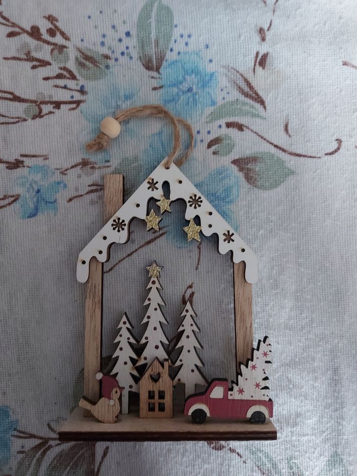 Décoration pour le sapin ou à poser, en bois 9,5 x 3 x ht 13 cm Neuve