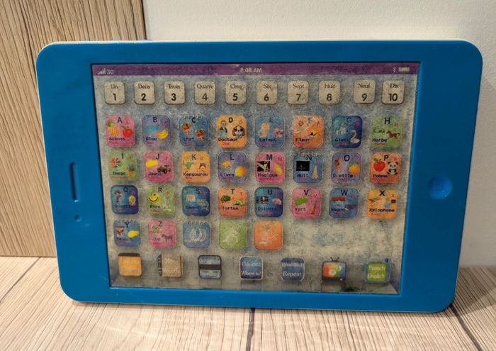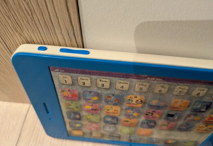 Tablette éducative pour enfant pour apprendre les chiffres et les lettres et certains mots. Il fonctionne parfaitement. Marque gifi. Mesure 20*13 cm