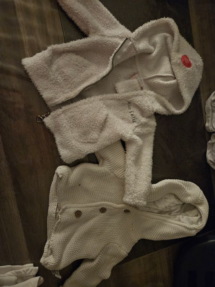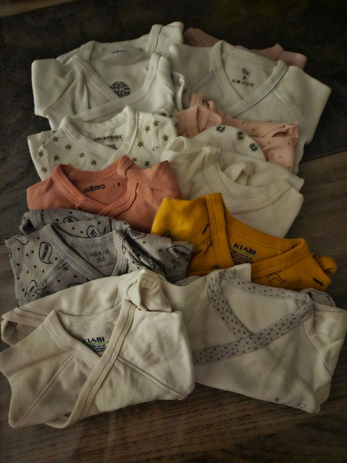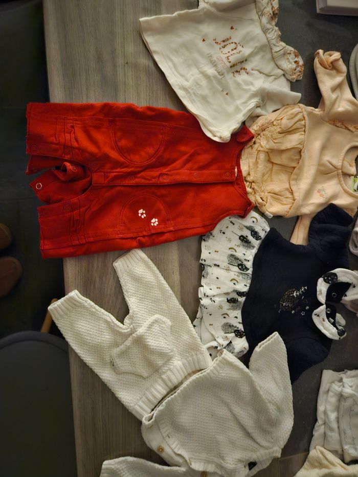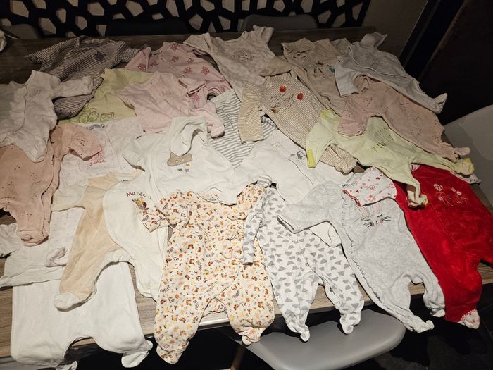 Vends lot vetements taille naissance 0 24 pyjamas 17 Bodys 6 pantalons 2 vestes 2 gilets 1 ensemble blanc Une robe noir et blanche Une salopette rouge Un ensemble body rose Un pull 4 sous pulls 2 Tee-shirts