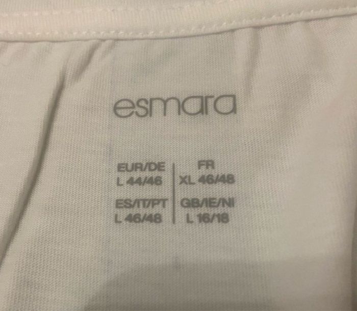 Tee-shirt »Esmara »blanc et multicolore,neuf avec étiquettes. Taille 46/48. Mesure d’aisselles à aisselles:55cm=110cm de tour de poitrine. 🎯Guides de tailles disponibles en dernières photos. 📌Il faut savoir que souvent les marques peuvent avoir un guide de taille qui diffère des unes aux autres donc Merci de vérifier les mesures de vos vêtements avec celui-ci car si ça ne convient pas je n’en serais pas responsable. Si vous avez le moindre doute, n’hésitez pas avant achat de me demander les mesures ou renseignements afin d’éviter tous désagréments. PS:Tous les vêtements sont lavés et repassés avant chaque envoi. 🔥🔥Réduction sur les lots activée🔥🔥 -5% de remise pour 2 articles. -10% de remise pour 3 articles. -20% de remise pour 5 articles.