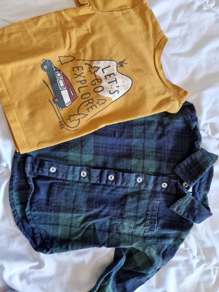 Chemise et t shirt Noukie's Je donne le t shirt avec car il a quelques tâche sur la manche. Si vous avez de bon détacheur chez vous il y a moyen de s'en débarrasser je n'ai rien essayer...