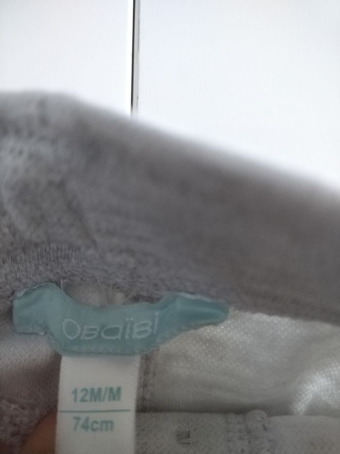 Pantalon jogpant gris bébé garçon Obaibi Comme neuf. Taille 12 mois