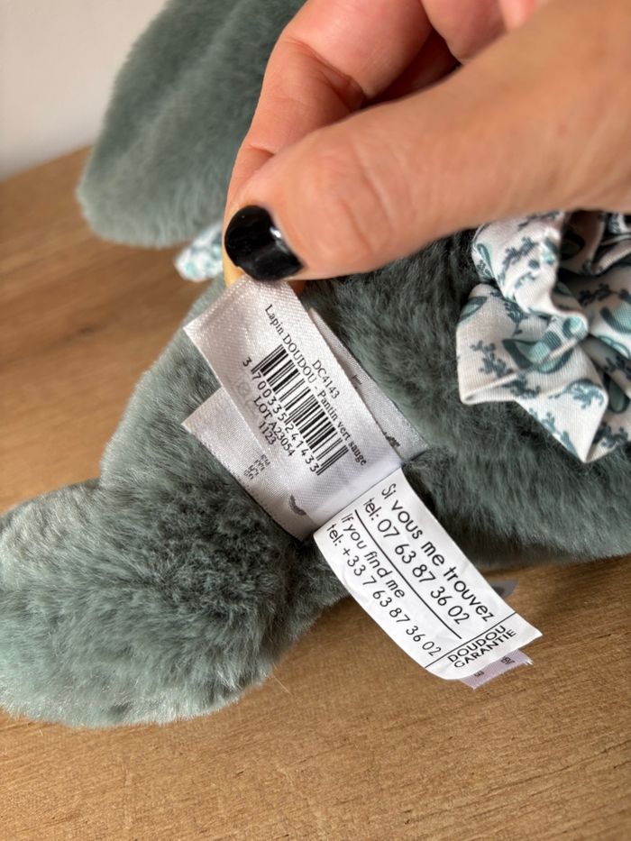 Lapin pantin vert sauge Doudou et compagnie 25 cm environ Très bon état Réf : C10