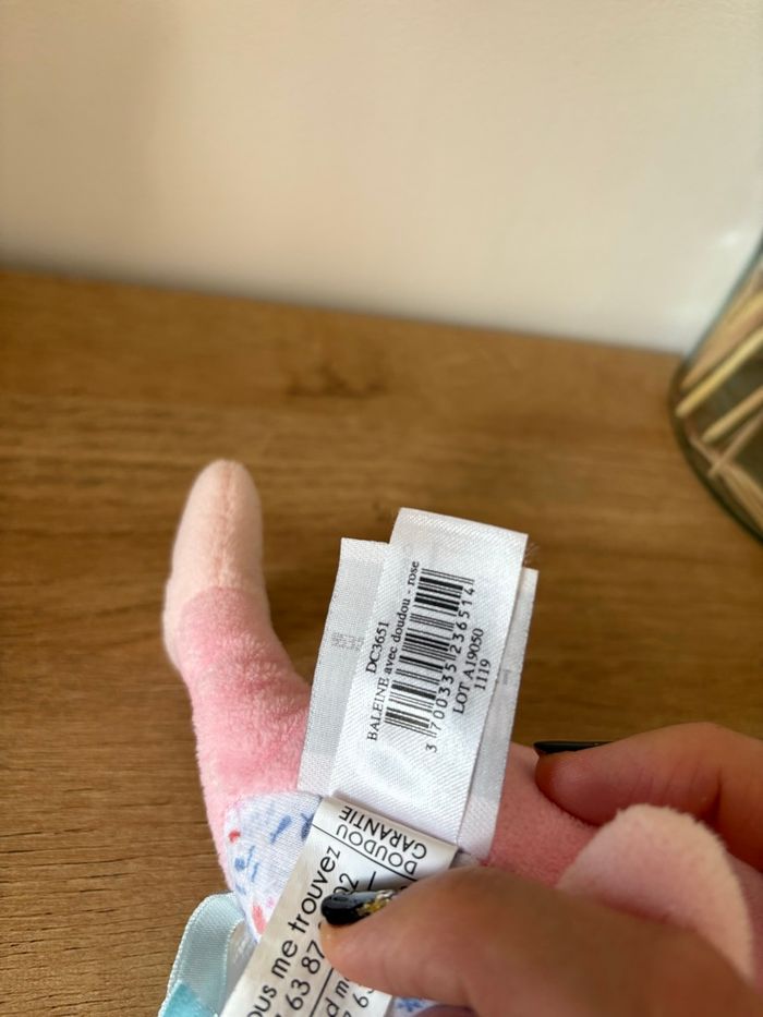 Doudou et compagnie Baleine avec doudou rose Très bon état Réf : D8