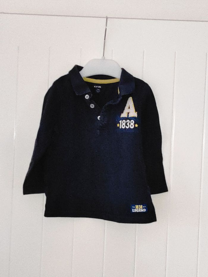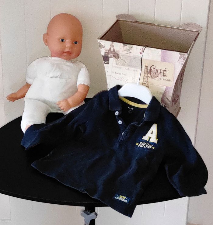 "Polo pour bébé garçon, taille 24 mois. Coloris : marine Motif : texte sur le devant ✨ Col et boutons légèrement passés, mais très bon état général Matière douce et confortable, parfait pour le quotidien ou les sorties 🧵 État : très bon général Parfait pour un look classique et pratique pour bébé."