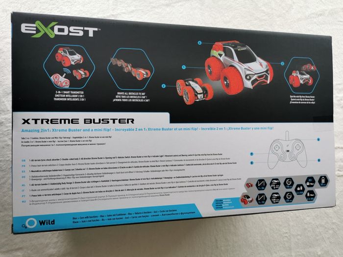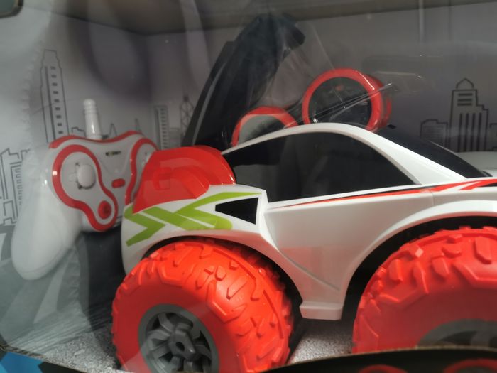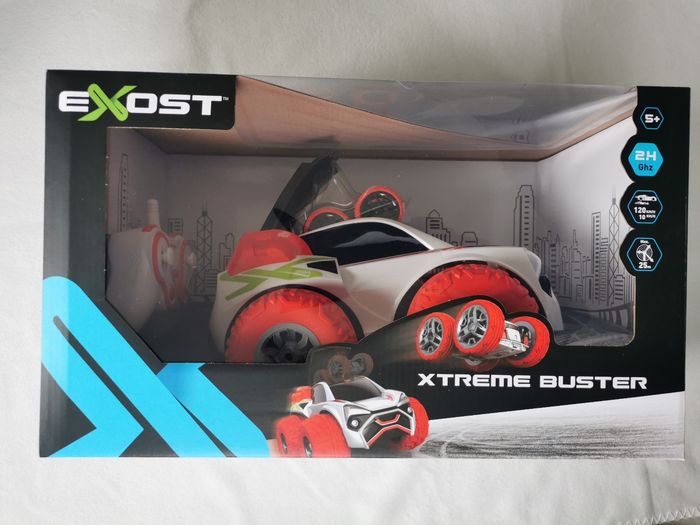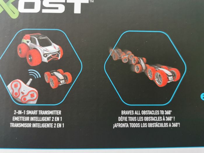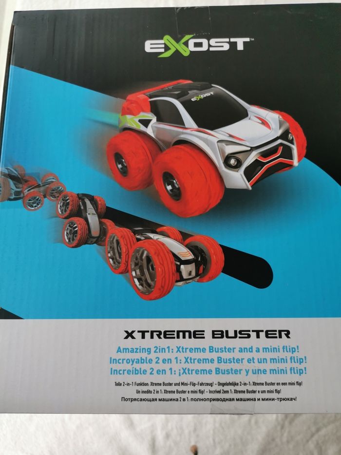 2 voitures télécommandées, silverlit exost extrem buster et mini flip