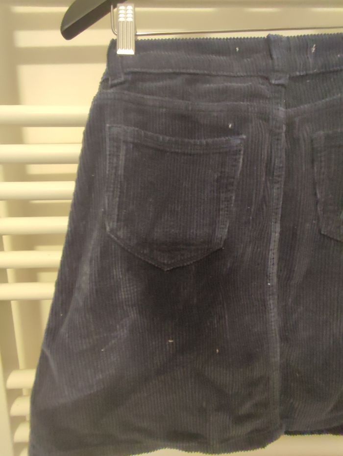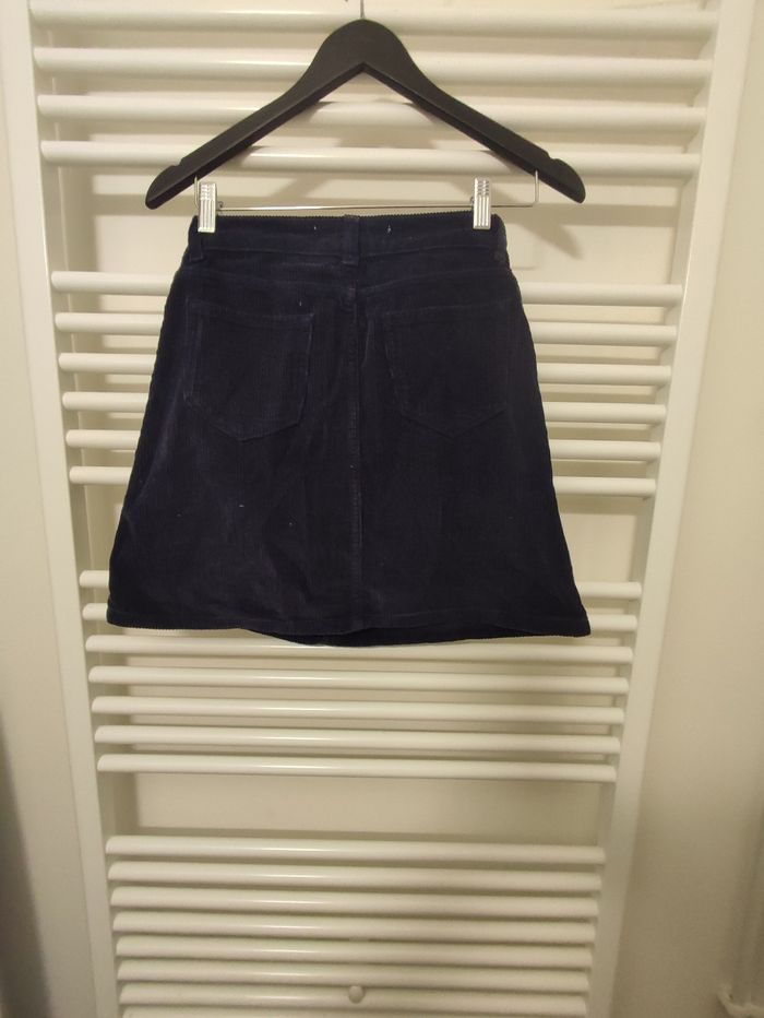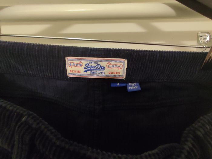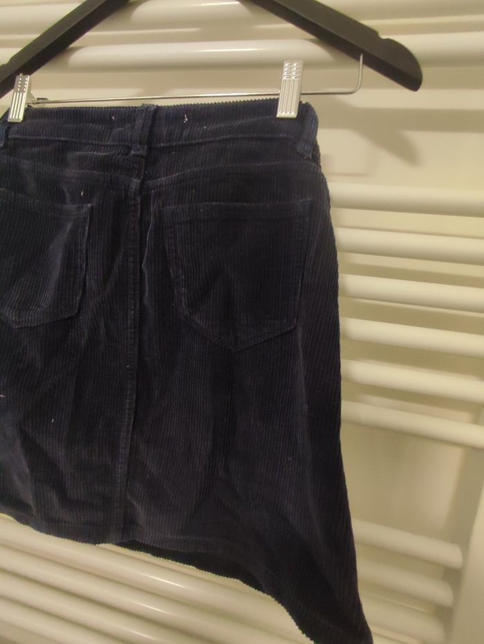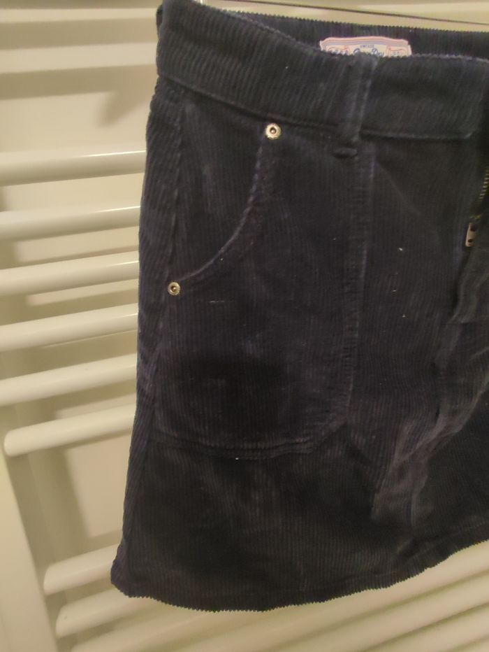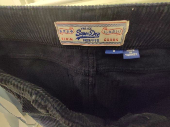 Vends jupe Superdry en velours taille XS, couleur bleu, portée 3 fois.