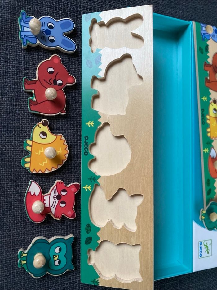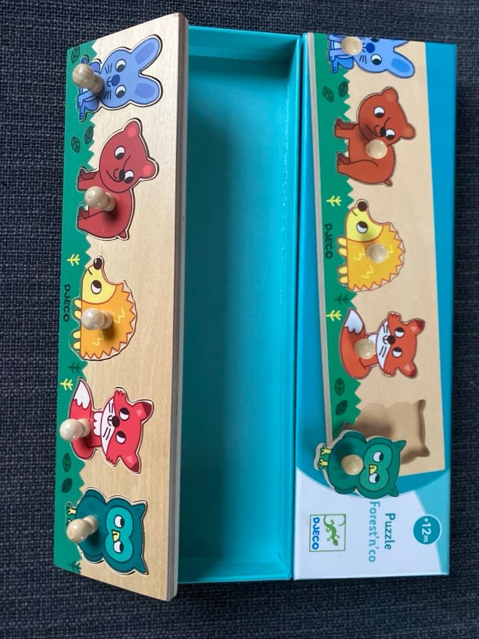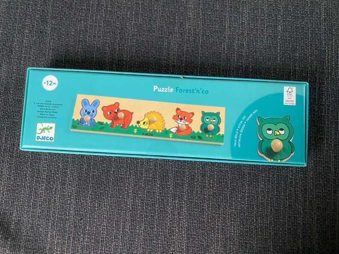 État neuf Puzzle d'encastrement en bois Forest'n'co Lapin ours hérisson renard chouette Les gros boutons facilitent la prise en main. - Vendu dans une boîte : pratique pour offrir et pour ranger. Dès 12 mois Djeco