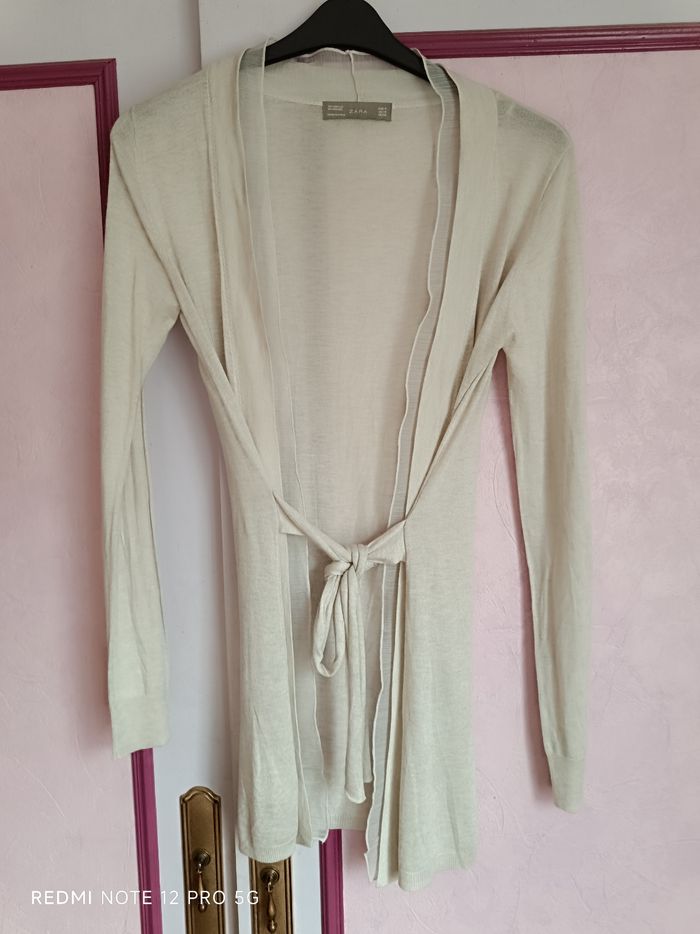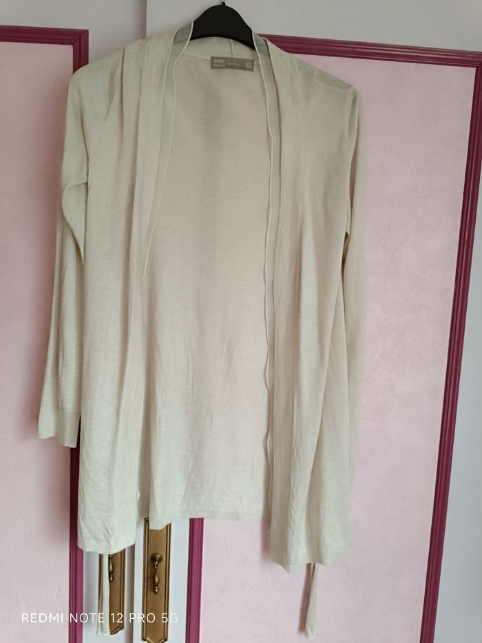 Veste longue écru Zara T.38 soit une T.M avec ceinture sans boutons comme neuve trés peu porté Gilet cardigan
