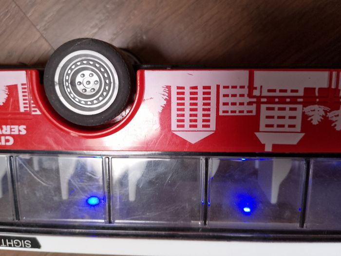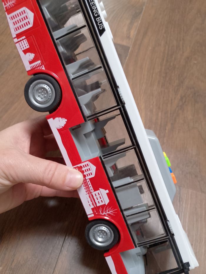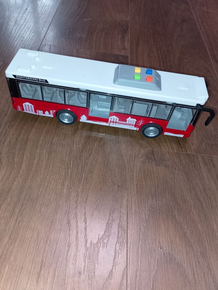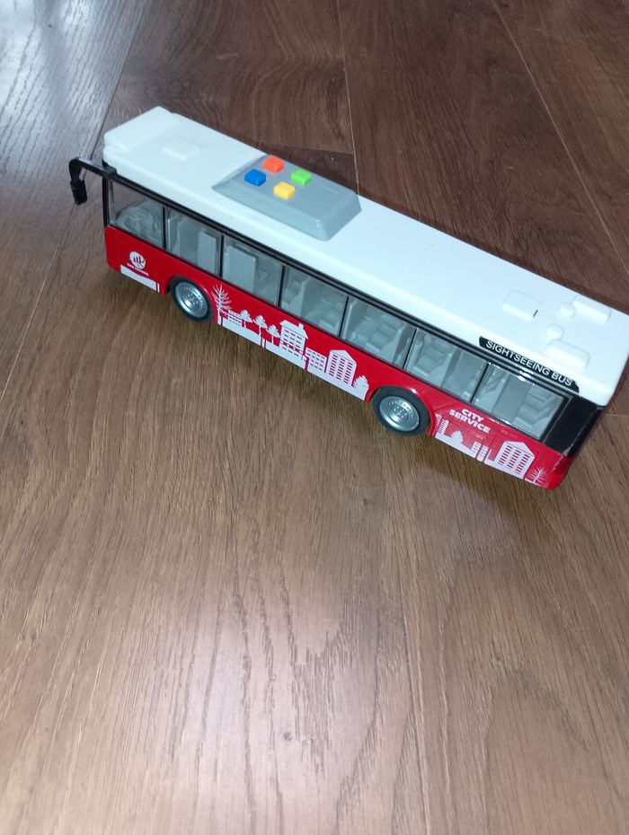 Bus rouge lumineux et sonore à friction Prévoir de changer les piles car plus trop fonctionnel