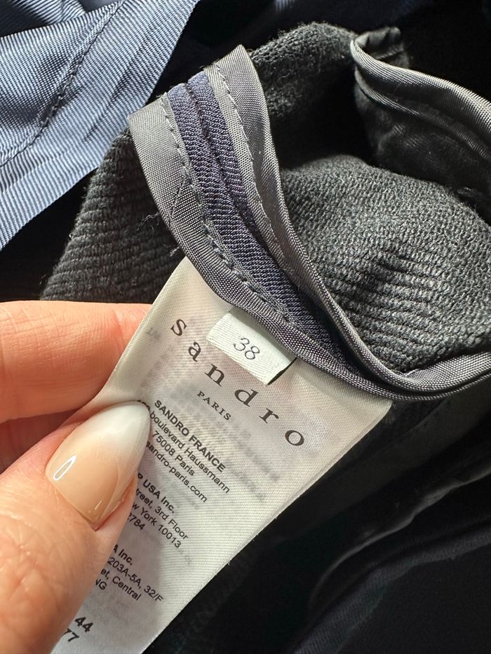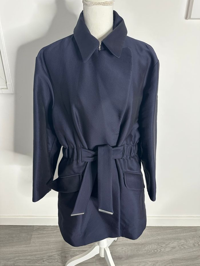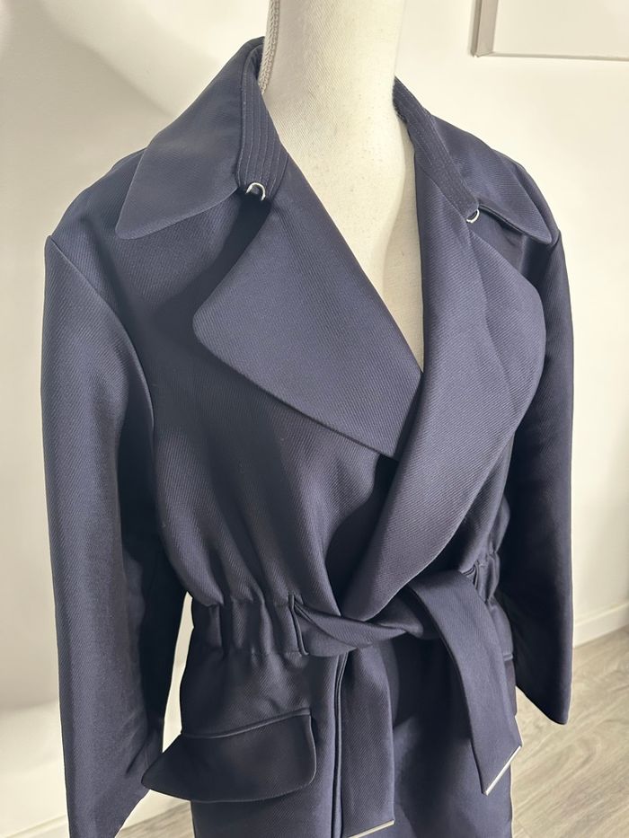 Trench - Excellent état - Taille 38 équivalent M Dimensions en bas de l’annonce - Marque Sandro - Couleur bleue marine - Se ferme avec une ceinture et un clip au col - Doublure intérieure - Deux poches - Manches 3/4 - Fendu à l’arrière - Coupe oversize - Coton, acétate, polyester, polyamide, élastane Dimensions: - 45cm niveau épaules - 55cm niveau aisselles - 83cm de long - 54cm épaule manche - 42cm aisselle manche