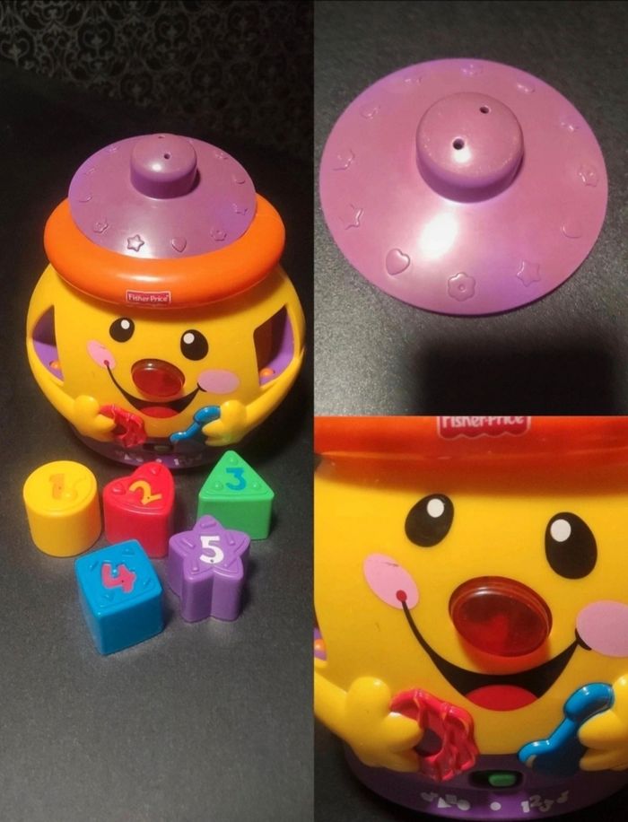 - boîte à cookies idéal pour apprendre à compter et reconnaître les formes. Sons et lumières. Complet. Couleur passé sur le couvercle voir photo.