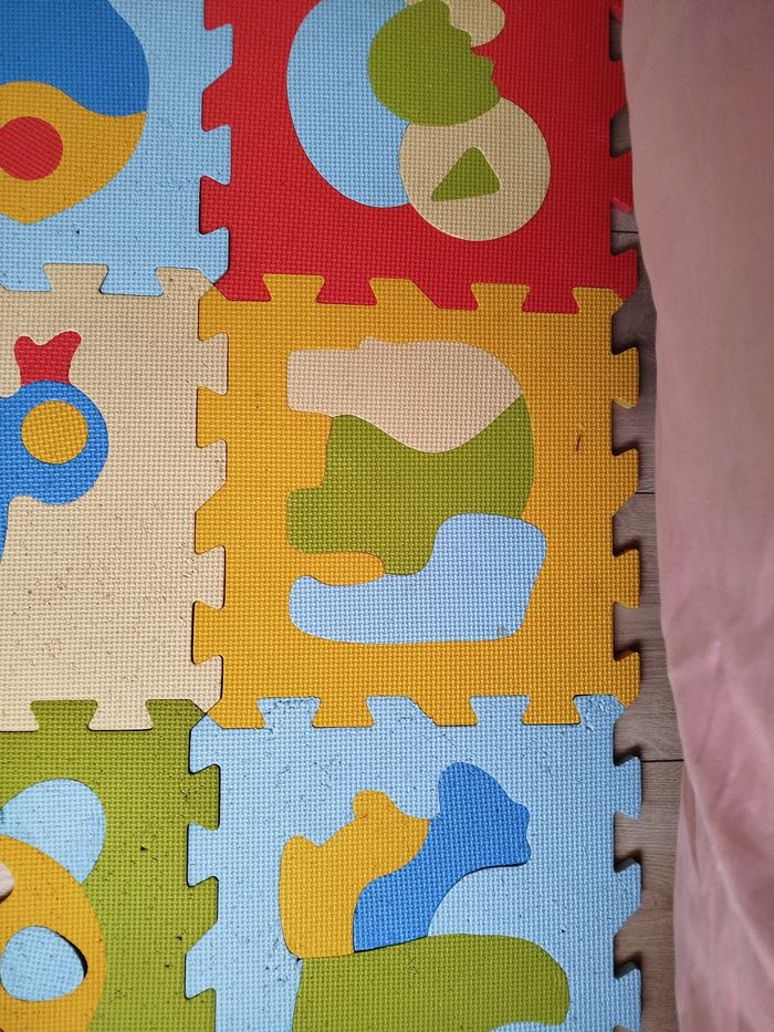 Bonjour à tous je vends c'est deux tapis de sol en mousse, quelques usure pris en photo. Tout âge Petit prix merci