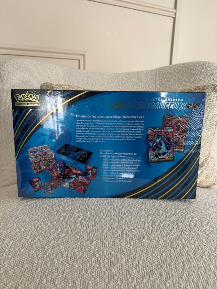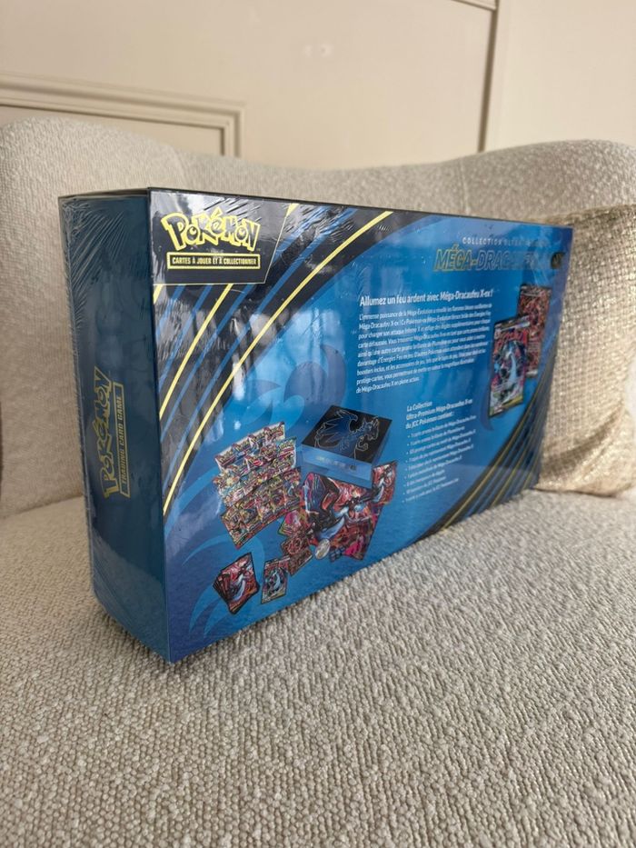 Je vends ce coffret Mega Dracaufeux collection Pokémon. Neuf, jamais ouvert, scellage impeccable sans dechirure. Envoie rapide Le colis sera bien protéger pour éviter tout dommage pendant la livraison. Prix 220€