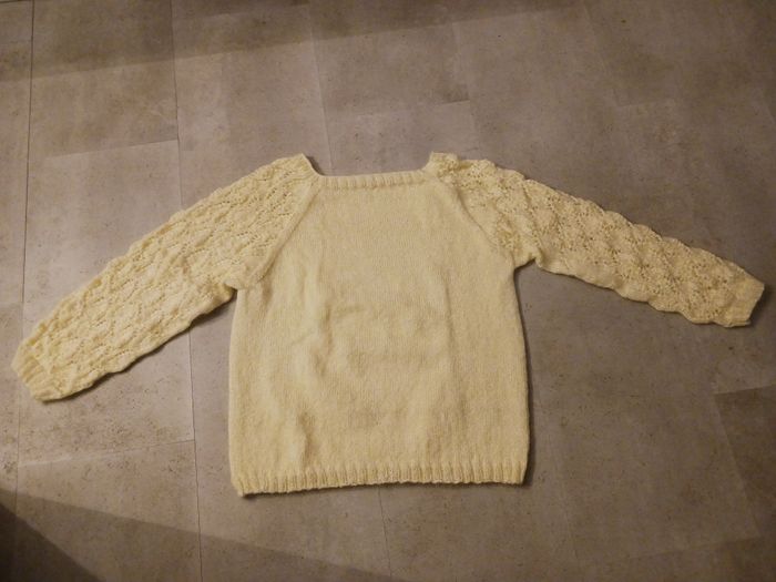 pull écru tricoté main 38/40 Phildar manches points ajourés neuf