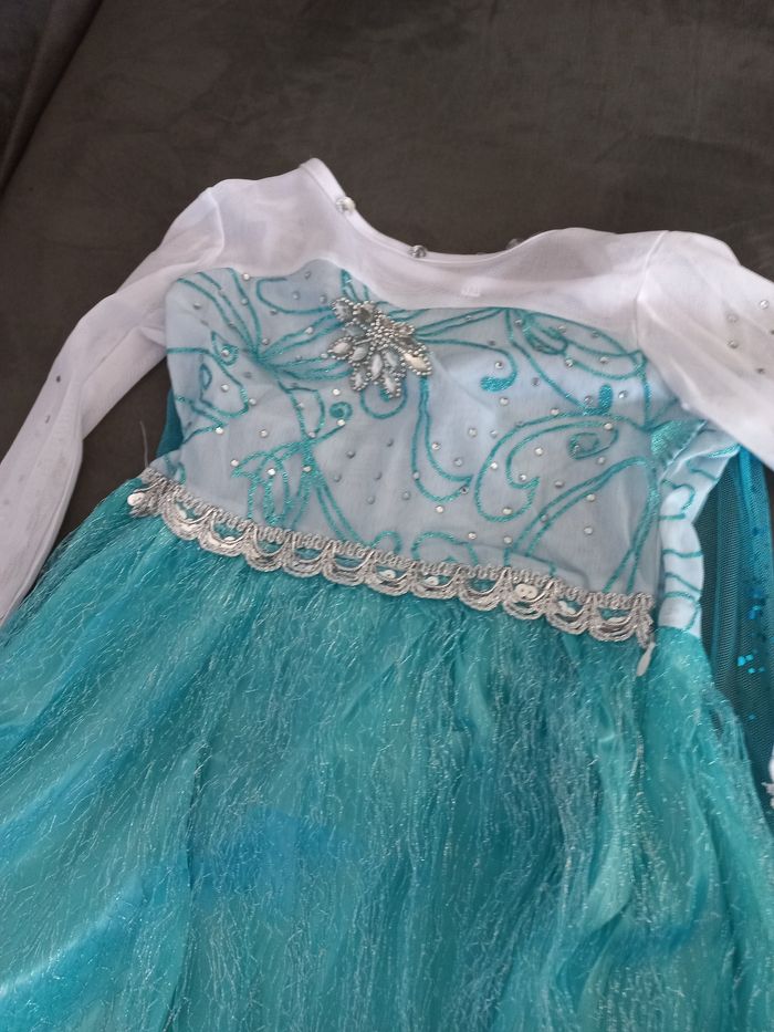 Robe déguisement elsa reine des neiges avec longue traîne 5/6 ans