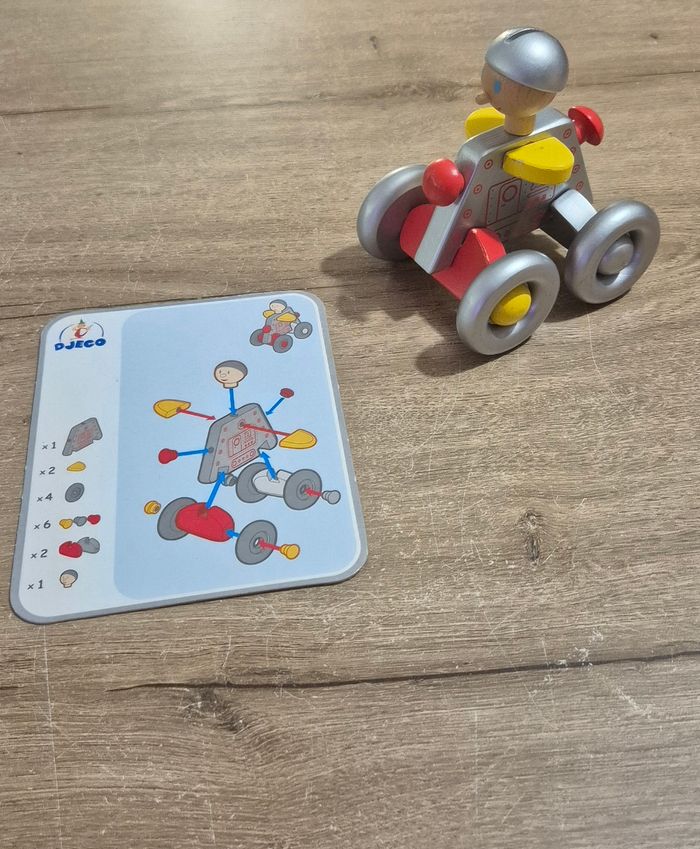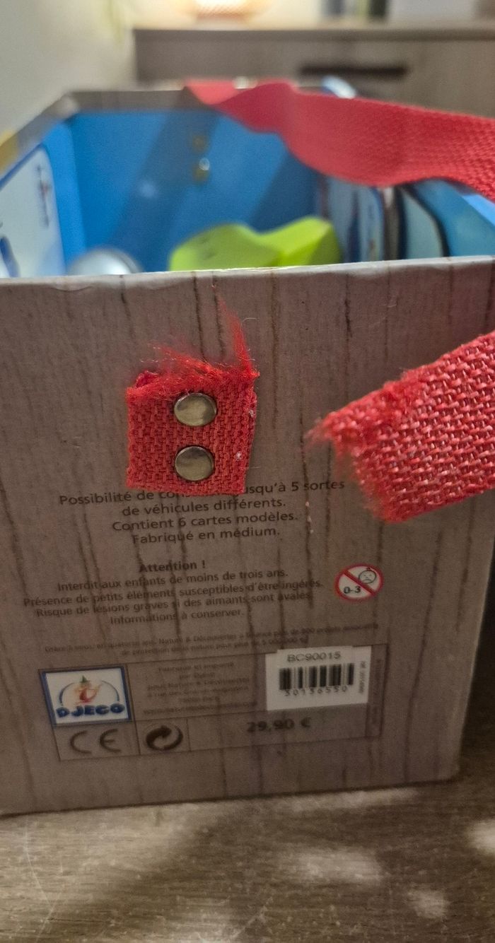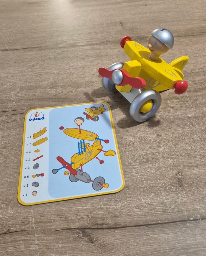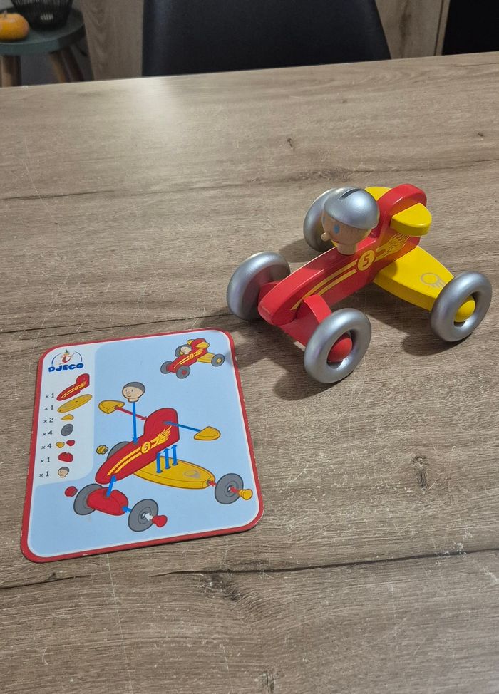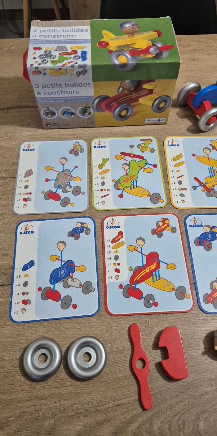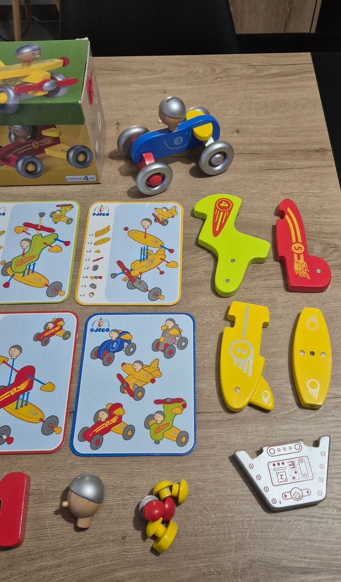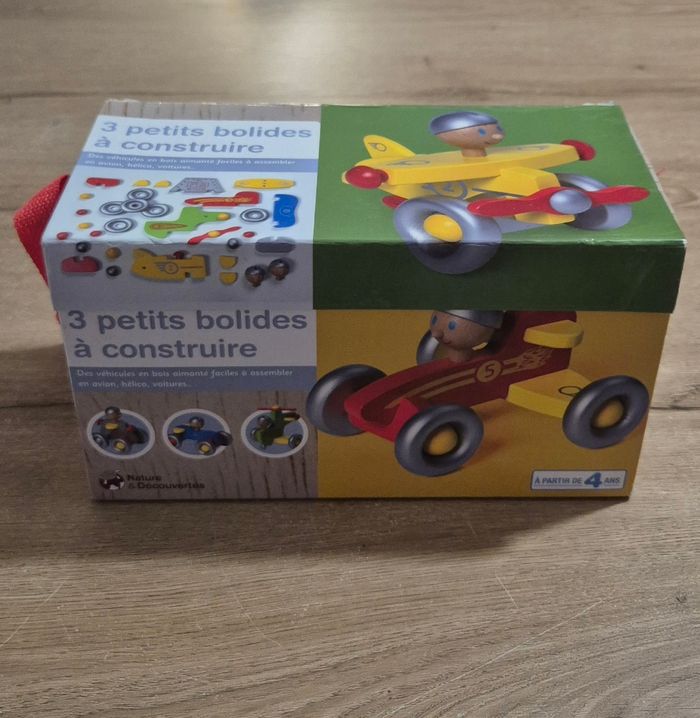Jeu de construction en bois aimanté : 3 petits bolides à construire 5 voitures et avions à construire Facile à assembler Djeco by Nature et Découvertes Très bon état et complet (juste la sangle de la boîte cassée)